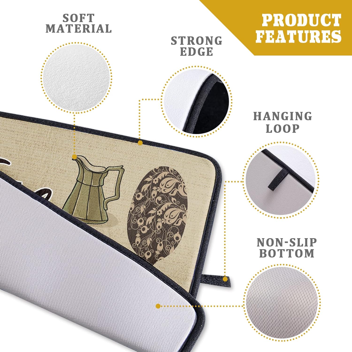 Dish Drying Mat The Kitchen is The Heart of The Home, 18x24 inch Large Absorbent Farmhouse Vintage Coffee Cooking Set Drainer Mat Dish Pad Protector for Countertops Home Office Cafe Accessory