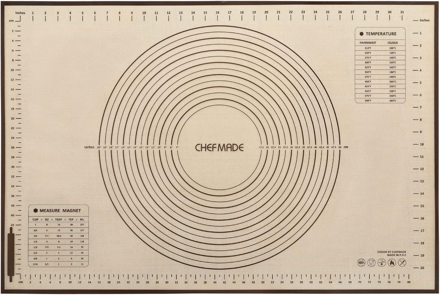 - CHEFMADE mat is ideal for baking measurement, Liquid scale conversion, Dough making and more