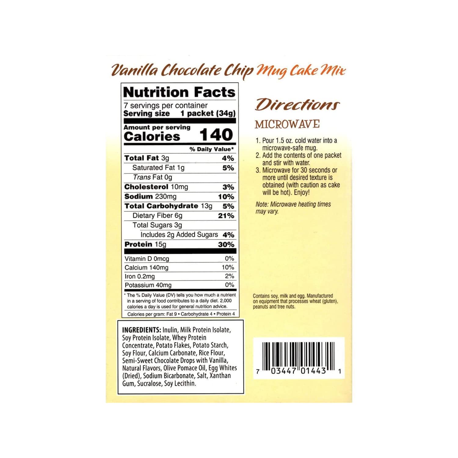 FITWISE - High Protein Mug Cake Mix, 15g Protein, Low Calorie, Low Net Carbs, Low Fat, High Fiber, Gluten Free, Ideal Protein Compatible, 7 Servings Per Box (Vanilla Chocolate Chip)