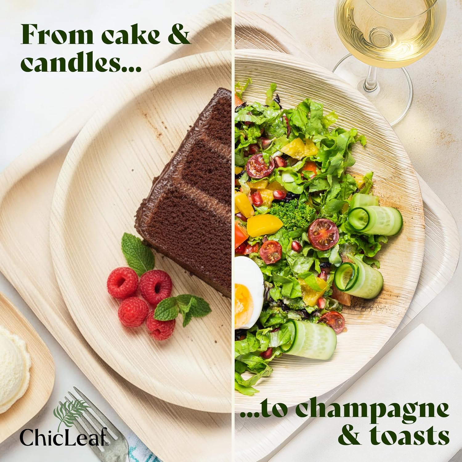 - Party Elegance: Celebrate gatherings with Chic Leaf palm leaf plates, perfect for outdoor cookouts and elegant festivities. These compostable dinner plates offer a stylish, eco-friendly option for any party