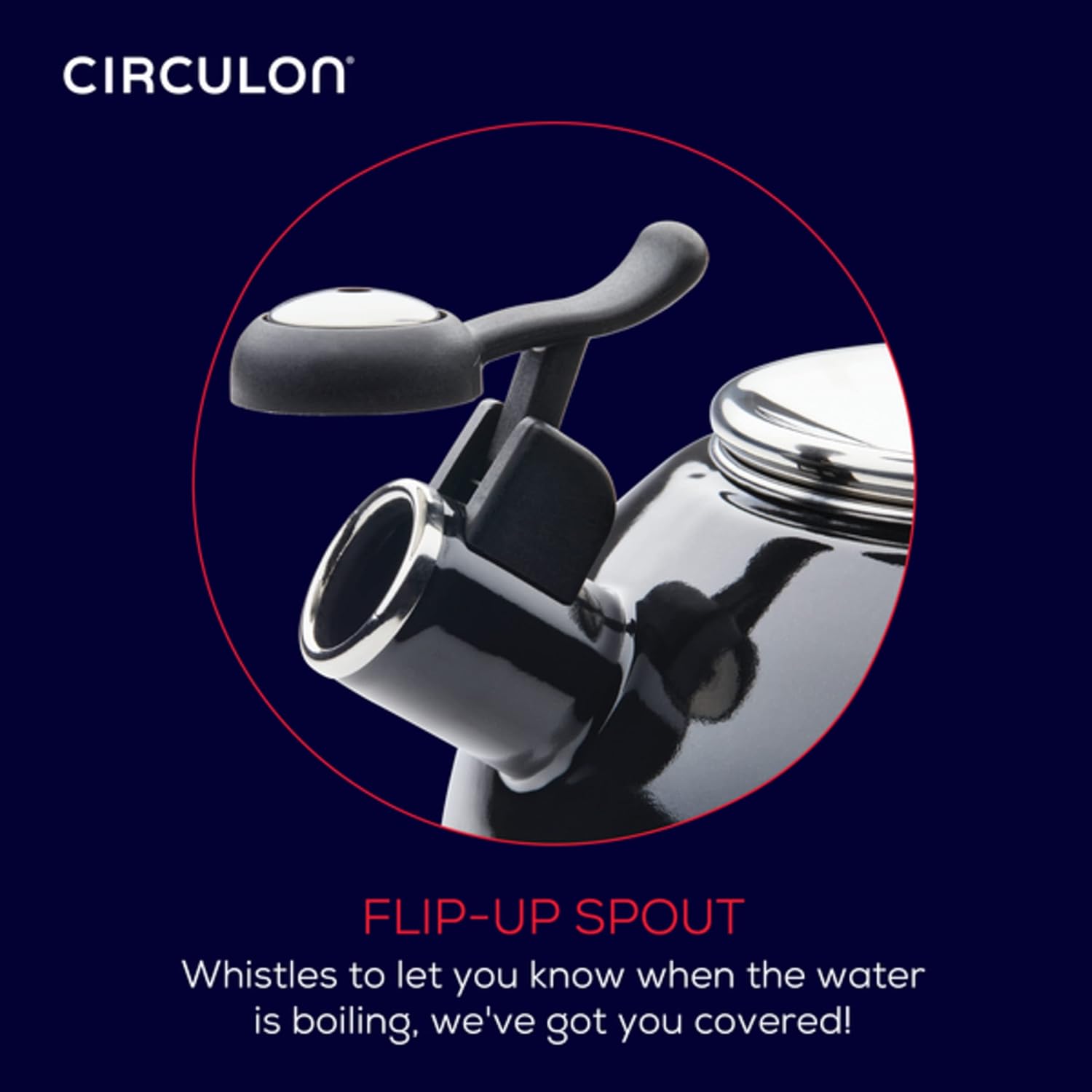 Circulon Enamel on Steel Whistling Teakettle/Teapot With Flip-Up Spout, 2 Quart - Black