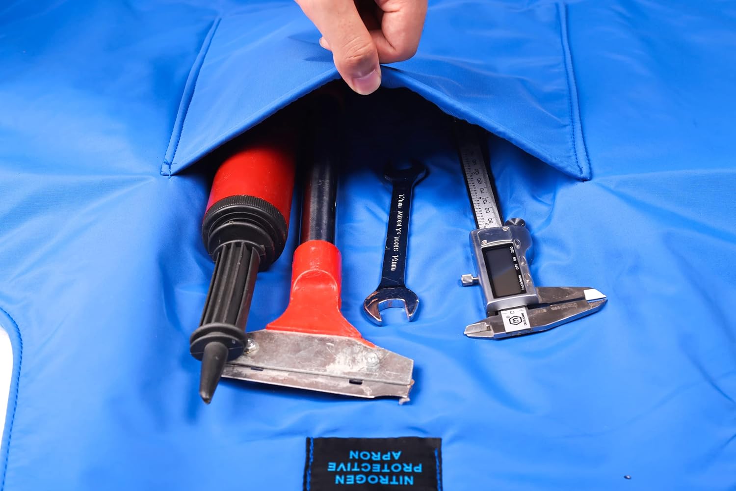 • Low Temperature Resistant Egowz cryogenic Aprons resist the cold and stay warm in temperatures as low as -260°C/-436°F. Its applicable temperature range is -260°C/-436°F to +148°C/298°F.