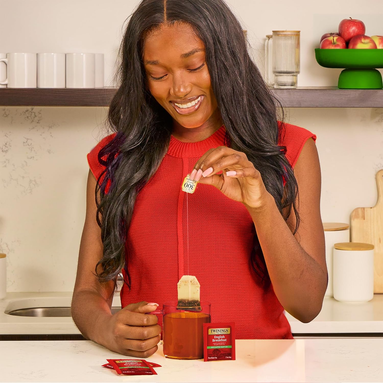 Twinings Decaffeinated English Breakfast Black Tea Individually Wrapped Bags, 100 Count (Pack of 1), Smooth, Flavourful Black Tea, Enjoy Hot or Iced, 100 Teabags