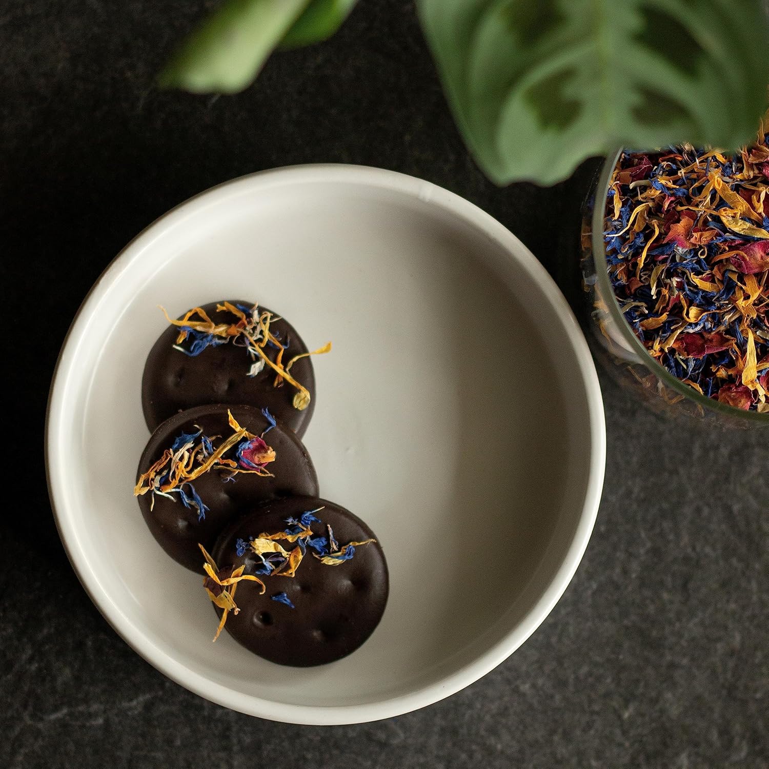 - Vibrant Edible Petal Blend – A premium mix of dried calendula, blue cornflower, and rose petals perfect for decorating cakes, cupcakes, cocktails, and more.