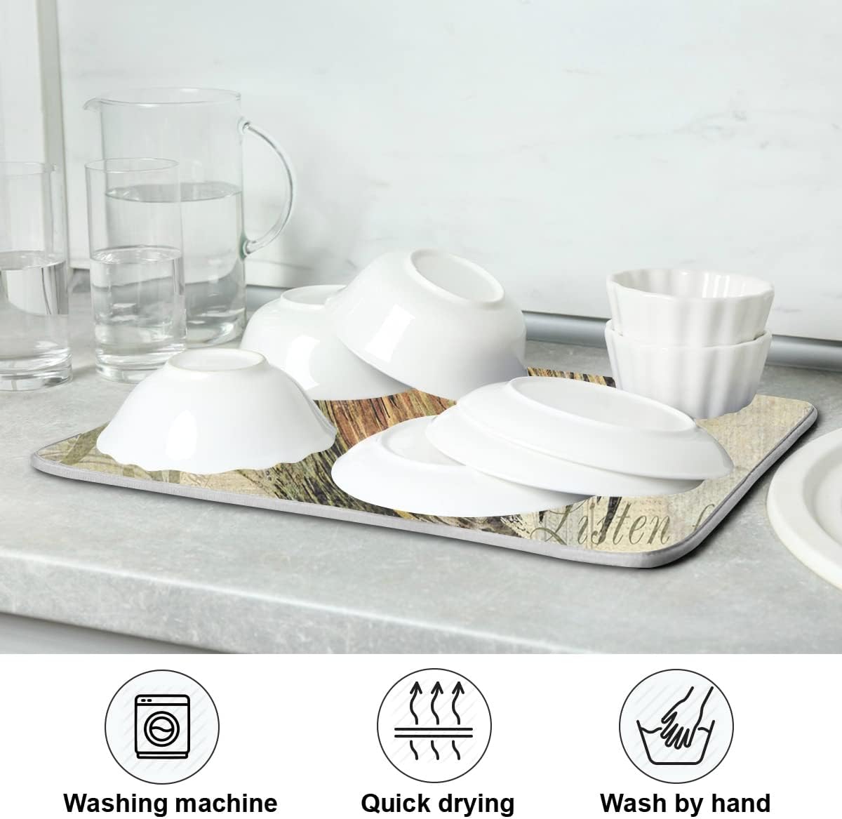 Farmhouse Rooster Dish Drying Mat 16 x 18 Inch with Hanging Loop High Absorbent Reversible Microfiber Dish Drying Pad Dish Rack Pad Drainer Mat for Kitchen Counter Coffee Bar