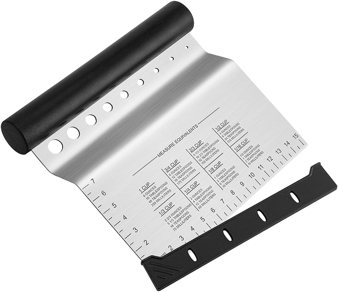 - Double Side Marks: Featuring advanced laser engraving technology, our pastry scraper is designed with clear measurement markings that won't wear away over time. The measurement scale ensures equal dough portions without the need for extra tools. Additionally, a conversion chart is included for your convenience.