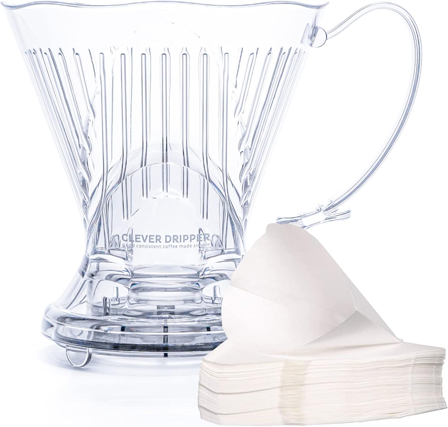 Clever Coffee Dripper and Filters, Large 18 oz, Original Classic Design, Safe BPA Free Plastic, dripper coffee maker, drip coffee maker pour over, 100 filters, coaster and lid, 18 oz (Clear)