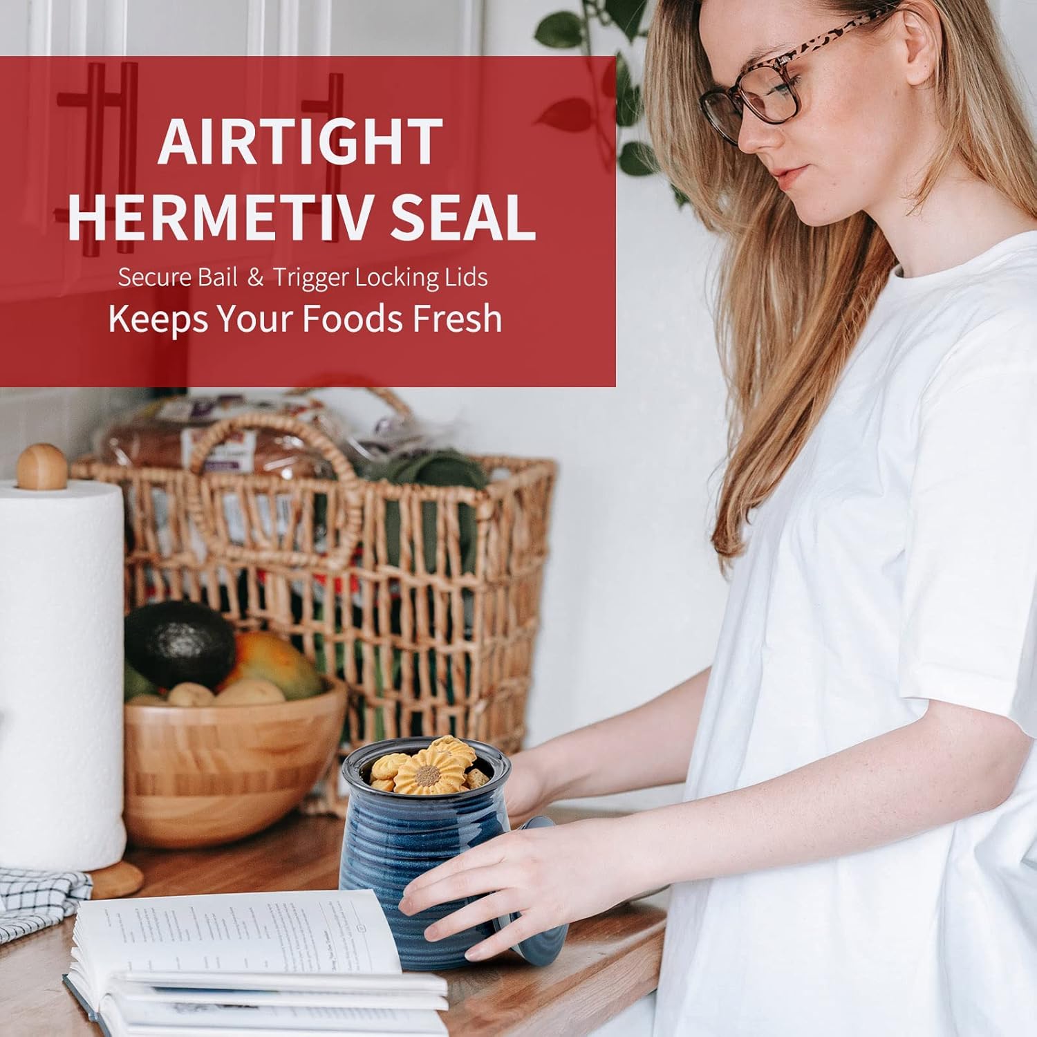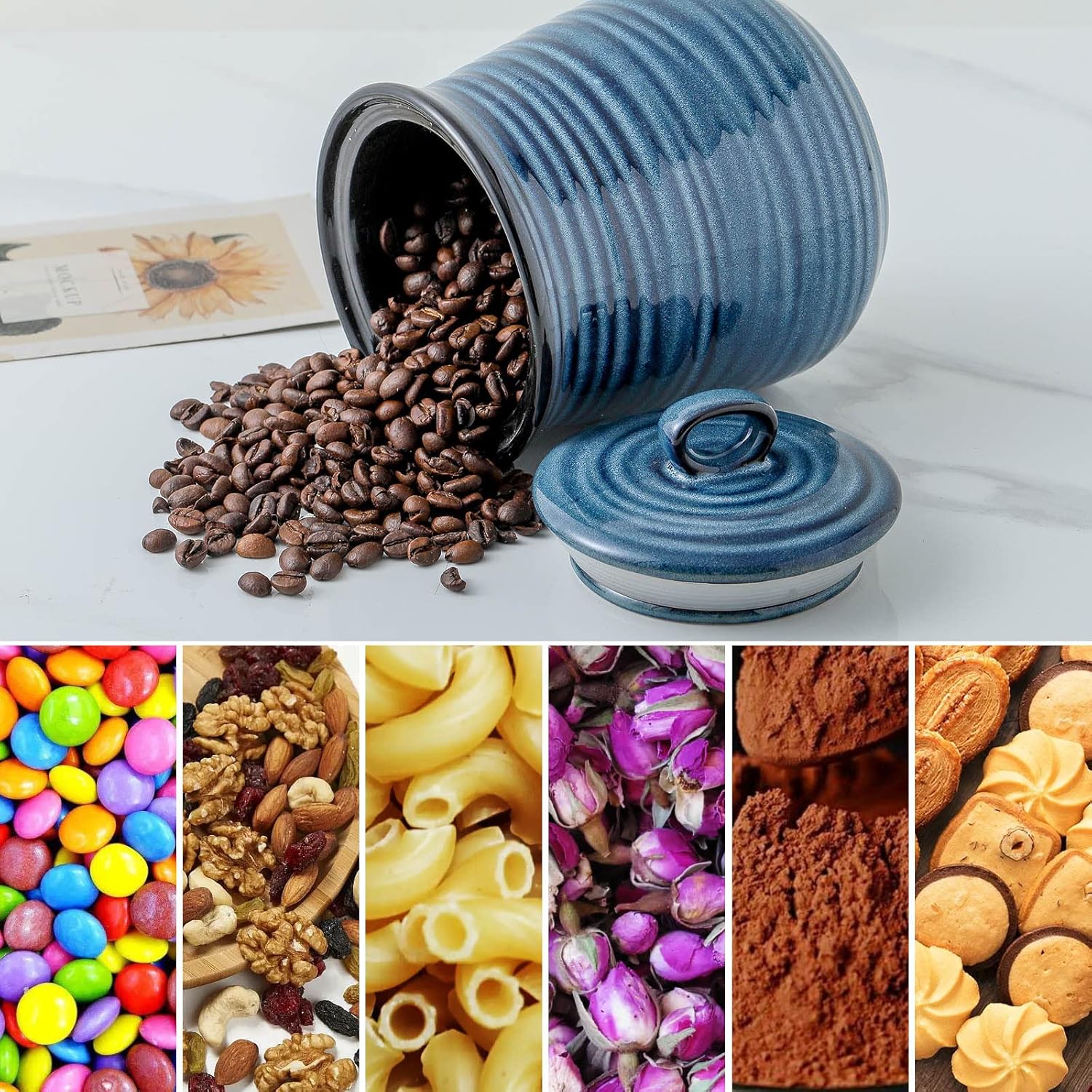 Hasense Ceramic Food Storage Jar, Coffee Canister with Lid, Cookie Candy Jar for Kitchen, Serving for Dog Treat Sugar Loose Tea Flour Coffee Beans Rice Snack Storage 30 FL OZ (Blue)