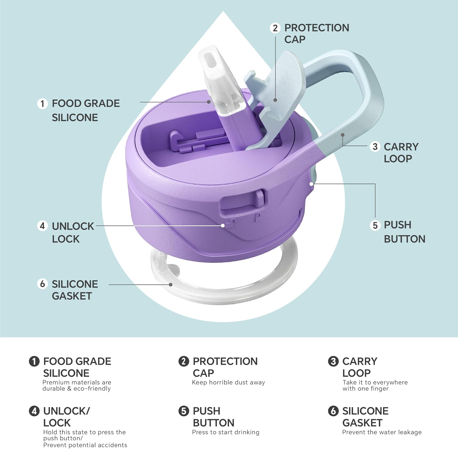 IDEUS Insulated Stainless Steel Water Bottle with 2 Leak-Proof Lids, Thermal Water Flask for Hiking Biking, 32oz, Violet