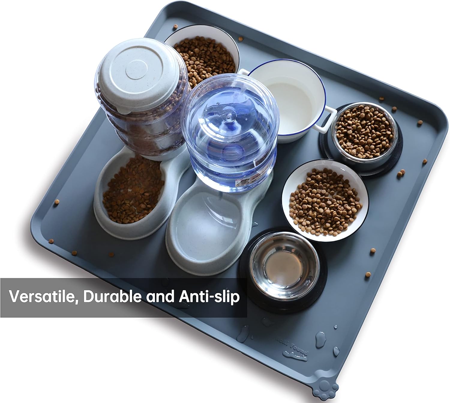 Hoki Found XX-Large Silicone Pet Feeding Mats - Non Slip Cat Dog Bowl Mats - Waterproof, Gray (28'' x 26'')