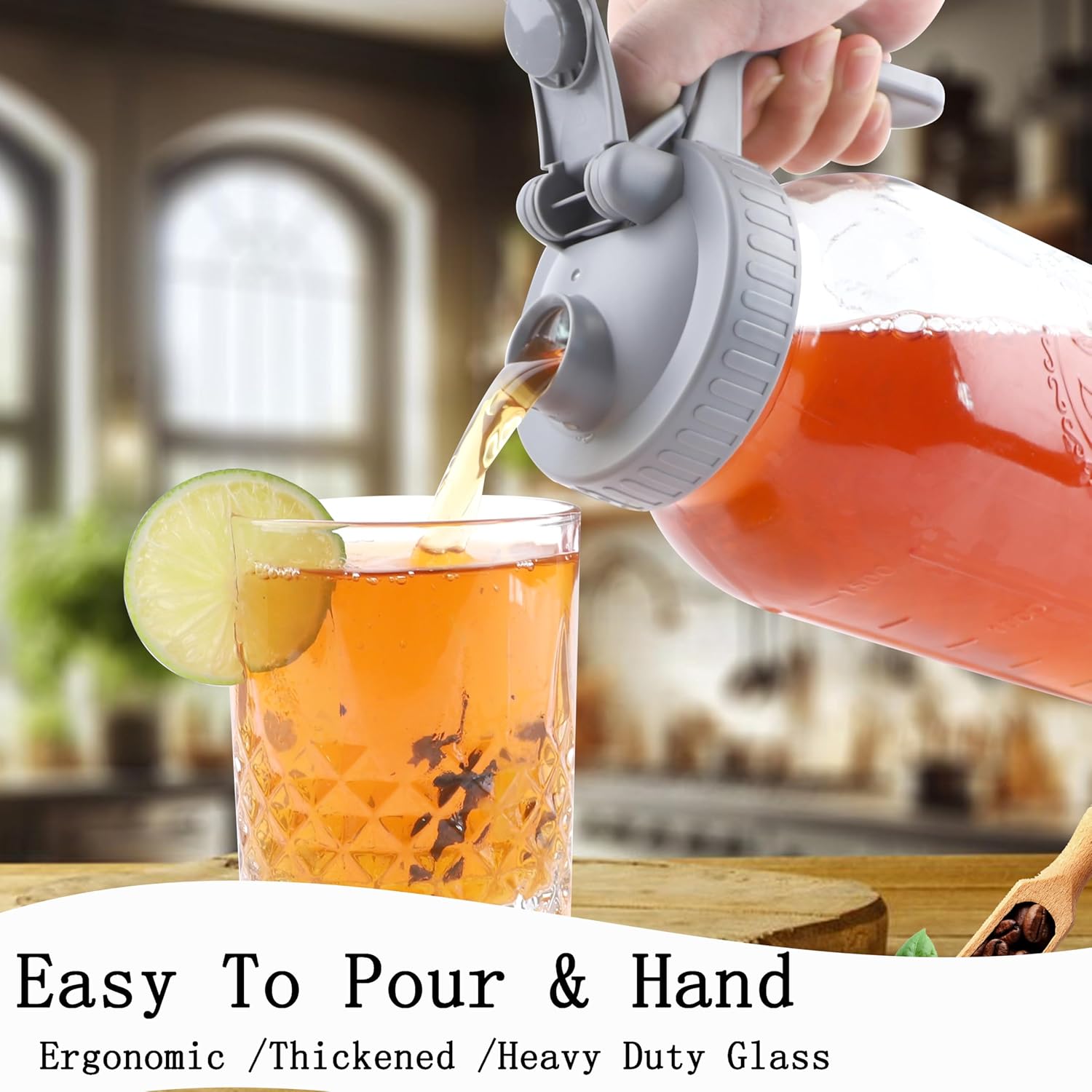 - LEAK PROOF & AIRTIGHT STORAGE - Mason Jar coffee Pitcher with silicone seal that will ensure not leak what so ever (even while shaking it upside-down🙃). The top flip cap has a secure snap fit closure that will not leak neither. Airtight container to keep your drinks fresh!