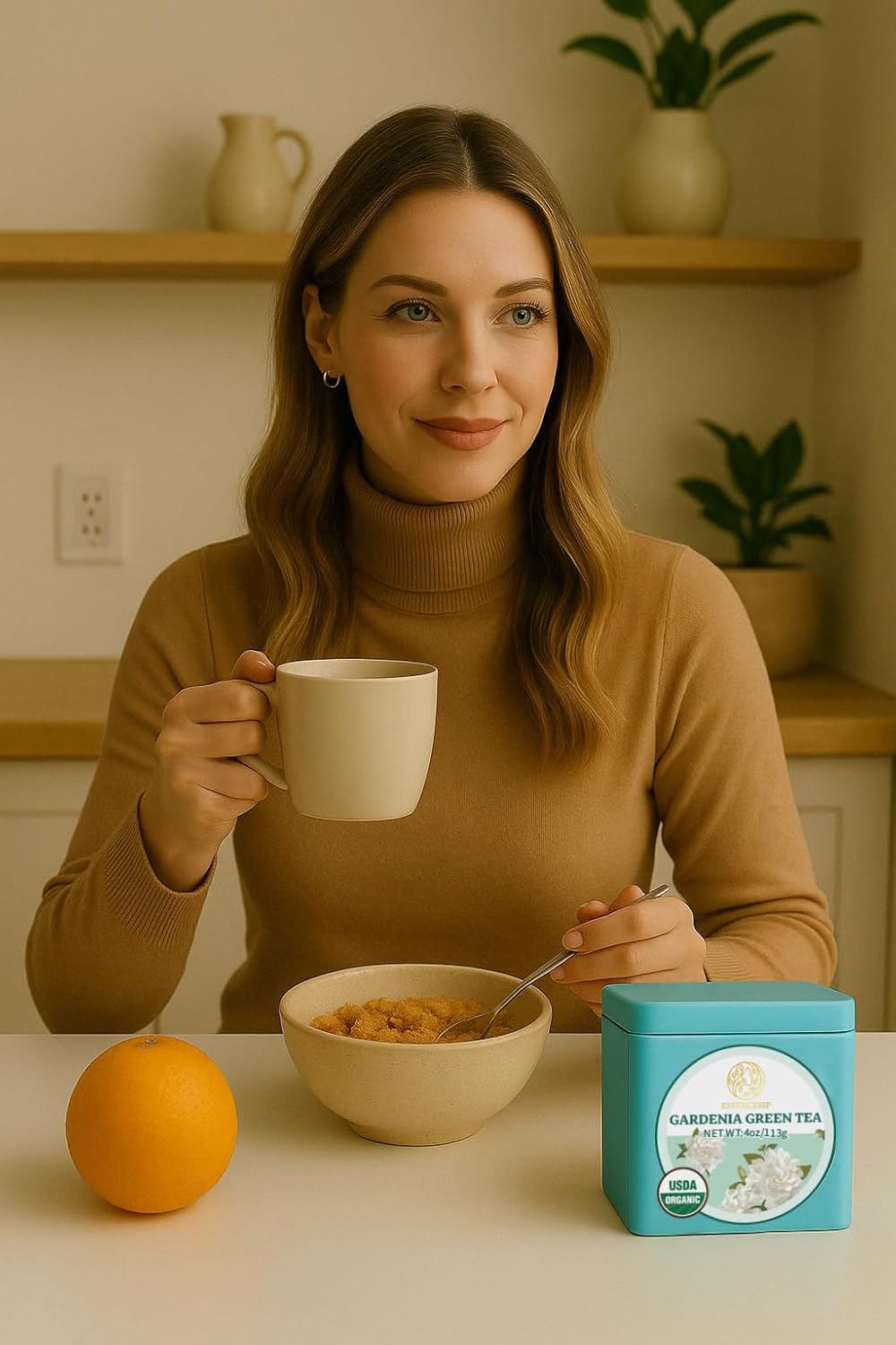 - Smooth Green Tea With White Peach Notes : Enjoy layers of silky gardenia sweetness bright green tea freshness and a lingering fruit-like finish perfect for slow mornings or mindful evening rituals
