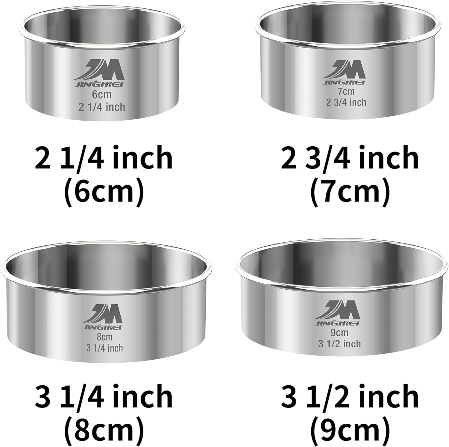 M JNGMEI 4 Pieces Stainless Steel Cookie Cutter Set Biscuit Cutter 2.25inch, 2.75inch, 3.25inch,3.5inch Biscuit Plain Edge Round Cutters Sizes Shape Molds Multiple Sizes