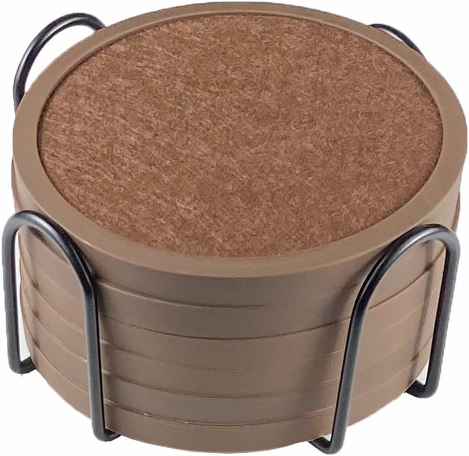 Absorbent Coasters for Drinks with Holder - 6packs, Silicone Coaster with Soft Felt Insert (4.3 inch Coasters with 4.5 inch Holder, Brown)