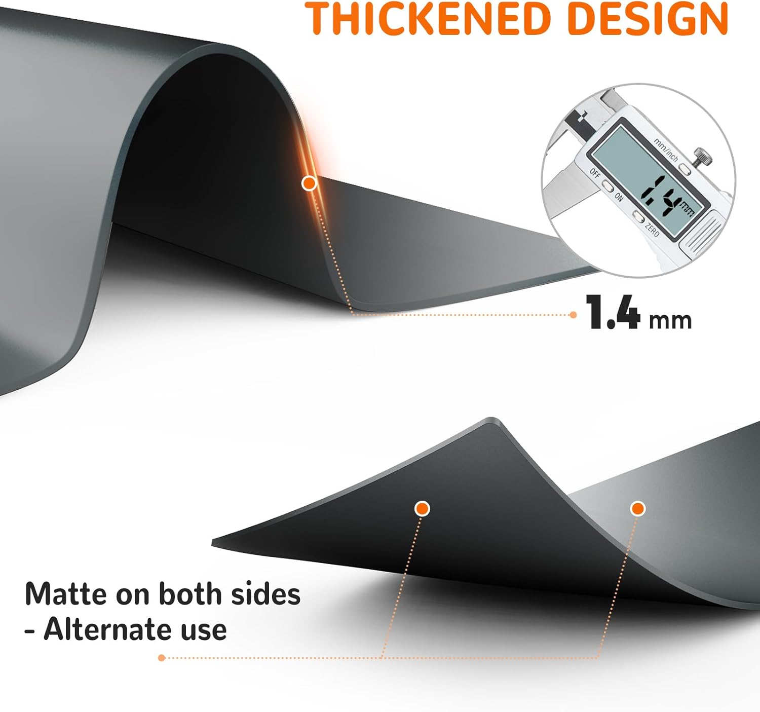 - EXTRA-LARGE, EXTRA-THICK COUNTERTOP MATS - Measures 47" x 23 3/5" x 0.055" (L x W x D) and weighs approximately 2.65 pounds. Extra large silicone mat can covers a huge amount of surface, edge to edge to catch all mess and keep spaces clean and protected.Countertop protector is thick enough to absorb about any kind of impact from fragile dishes or cookware.Protect your complete large island countertop just with a Warome silicone mat