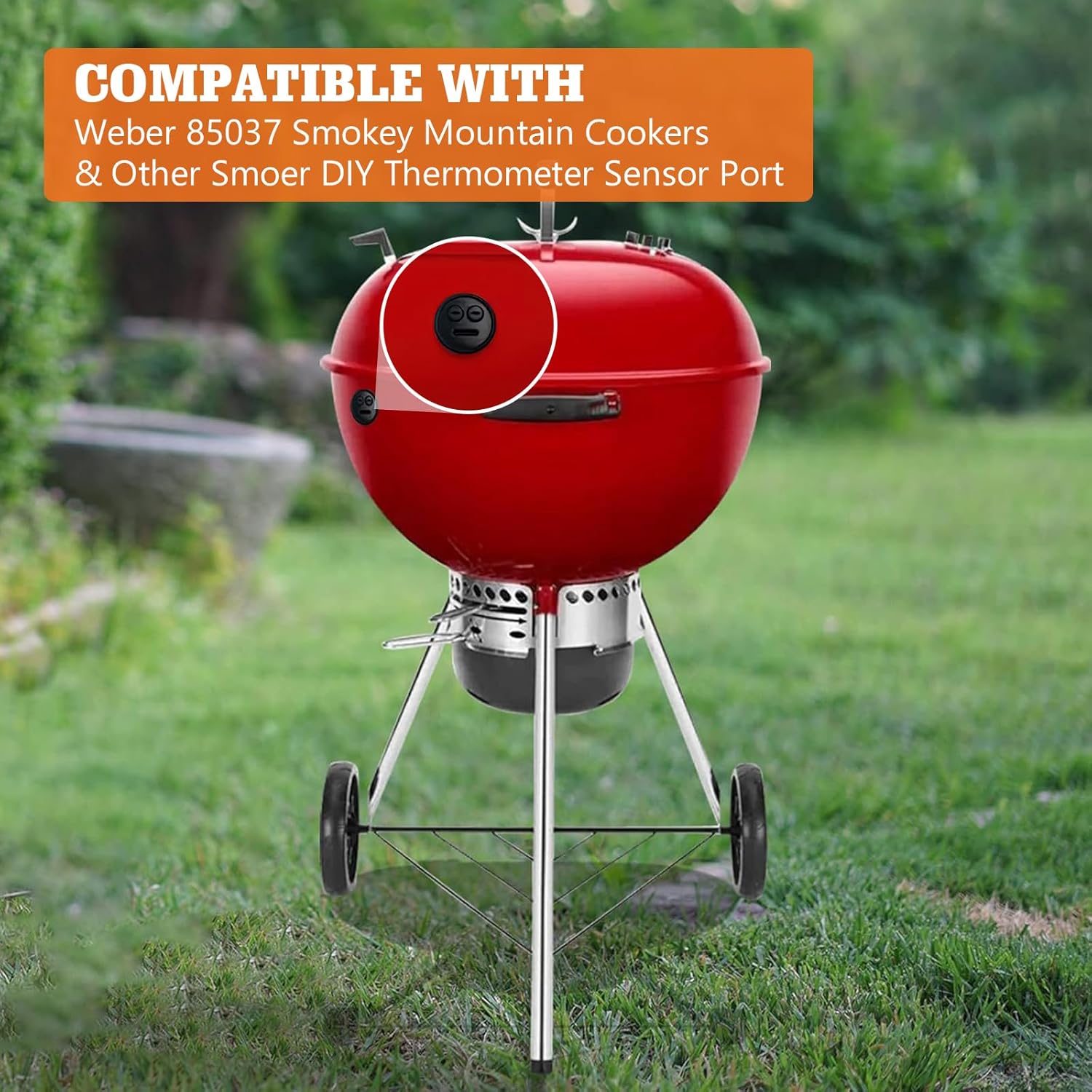- REPLACE PROBE GROMMET: Compatible with Weber Smokey Mountain Cookers (14", 18"& 22"). Size: Overall diameter 1.65", Hole diameter 1.25", Thickness 0.35" (TIP: FIT FOR METAL PLATE THICKNESS 0.04")