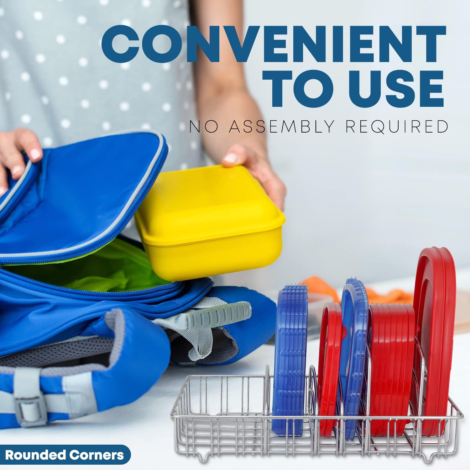 - FOR ALL SIZE LIDS: Neatly stores round & square lids of up to 10.5” wide.