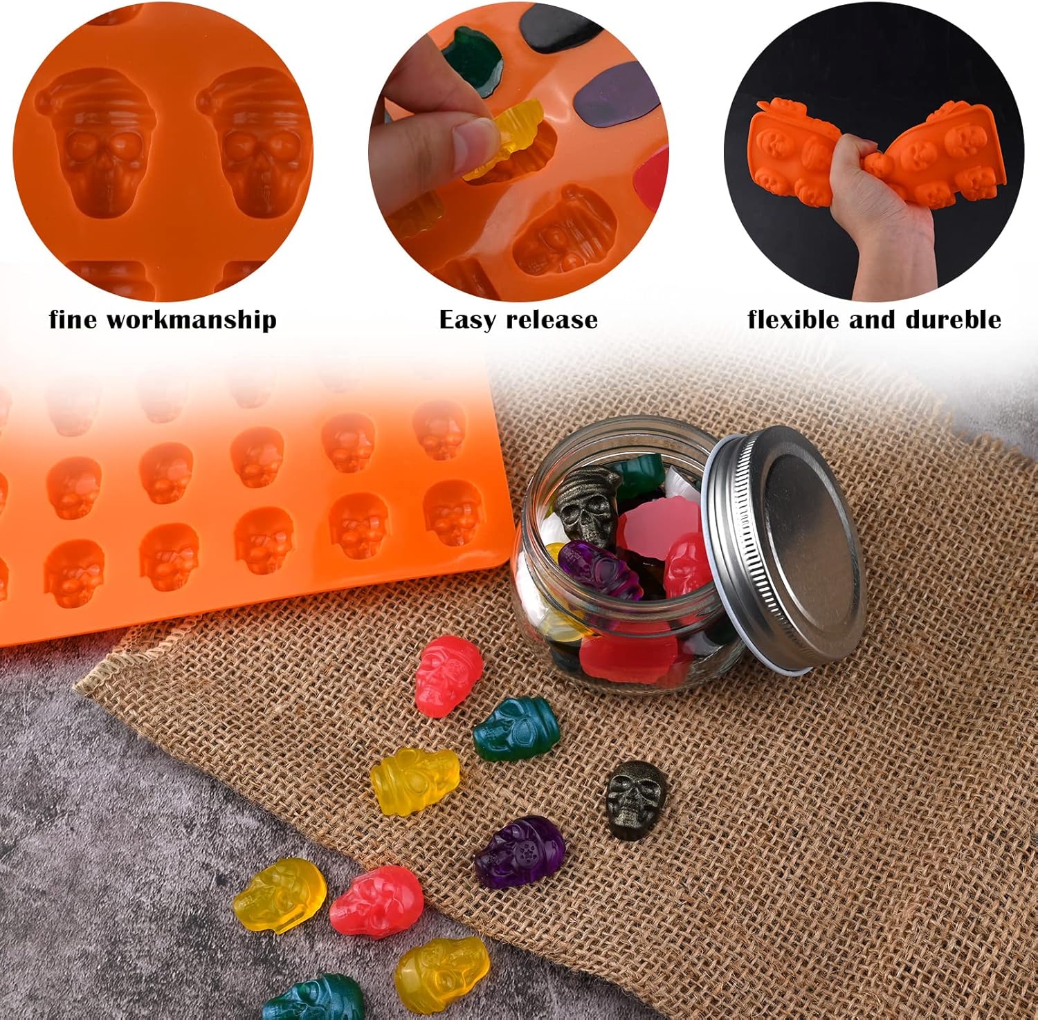 Sakolla Skull Candy Molds Silicone, 2 Pack 36 Cavity Non-Stick Halloween Gummy Molds for Chocolate, Candy, Jelly, Ice Cube, Dog Treats