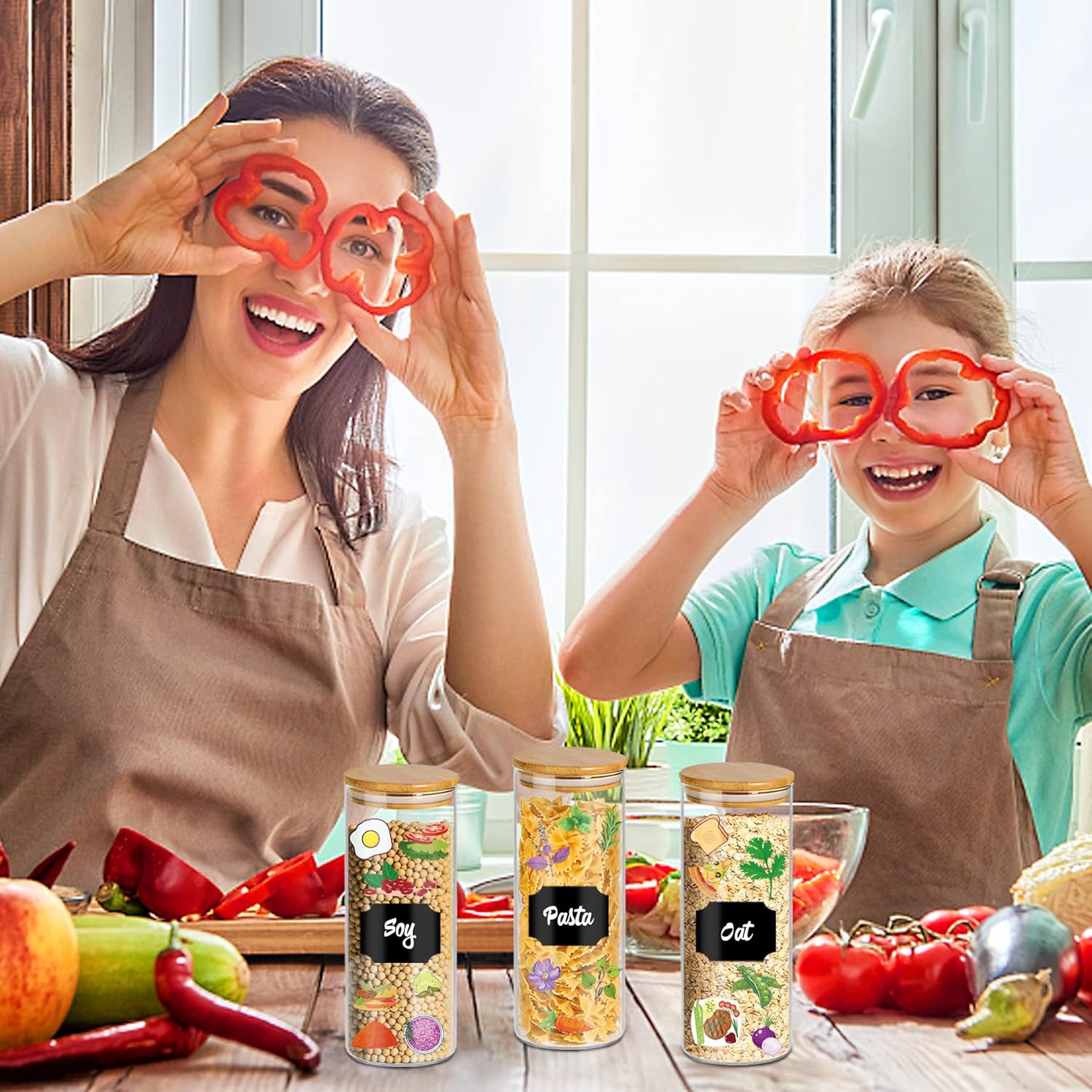 - 【Effortless Organization】Stay perfectly organized with 58 colorful labels included with these kitchen jars. The uniform airtight glass pantry storage containers set with bamboo lids stack neatly to maximize space - ideal for small kitchens storing flour, nuts or pet treats.