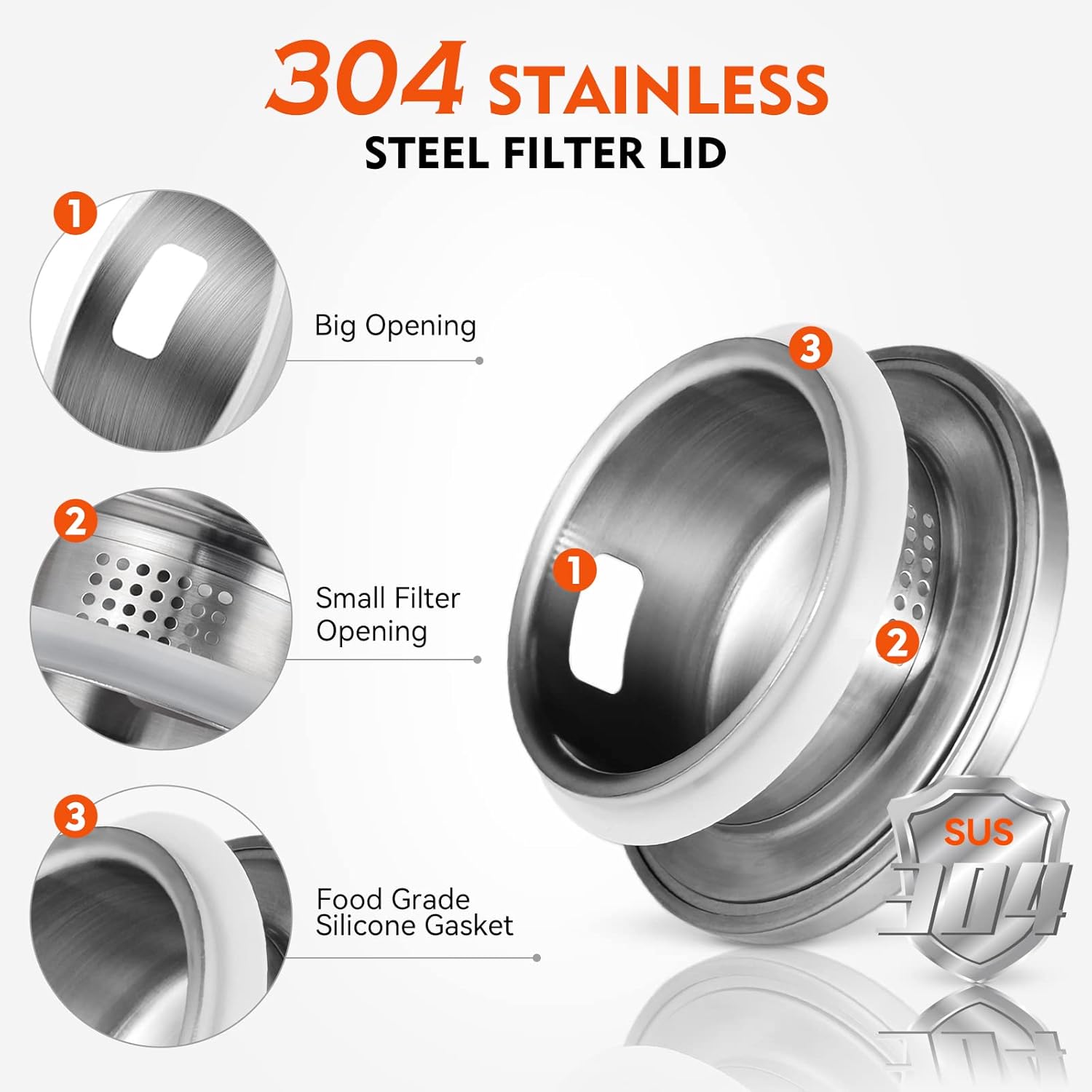 - STYLISH & USEFUL - 304 stainless steel filter is added to the lid, which keeps tea leaves, fruit slices, ice-cubes, or any other items you have in your beverage, within the jug as you pour your drink. Clever design allows pouring without needing to unscrew a top or stopper. And its spout is spill-free, along with an elegantly placed handle that provides an ergonomic grip. The design makes it easy to hold and pour, preventing any embarrassing oopsies.