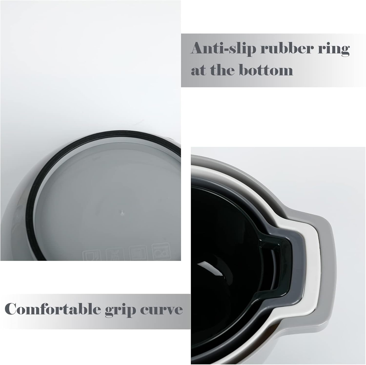 - Anti-Slip Design: There is a non-slip rubber ring on the base of 4 mixing bowls, which prevents the bowl moved during the mixing process. This design can help you prepare food better.