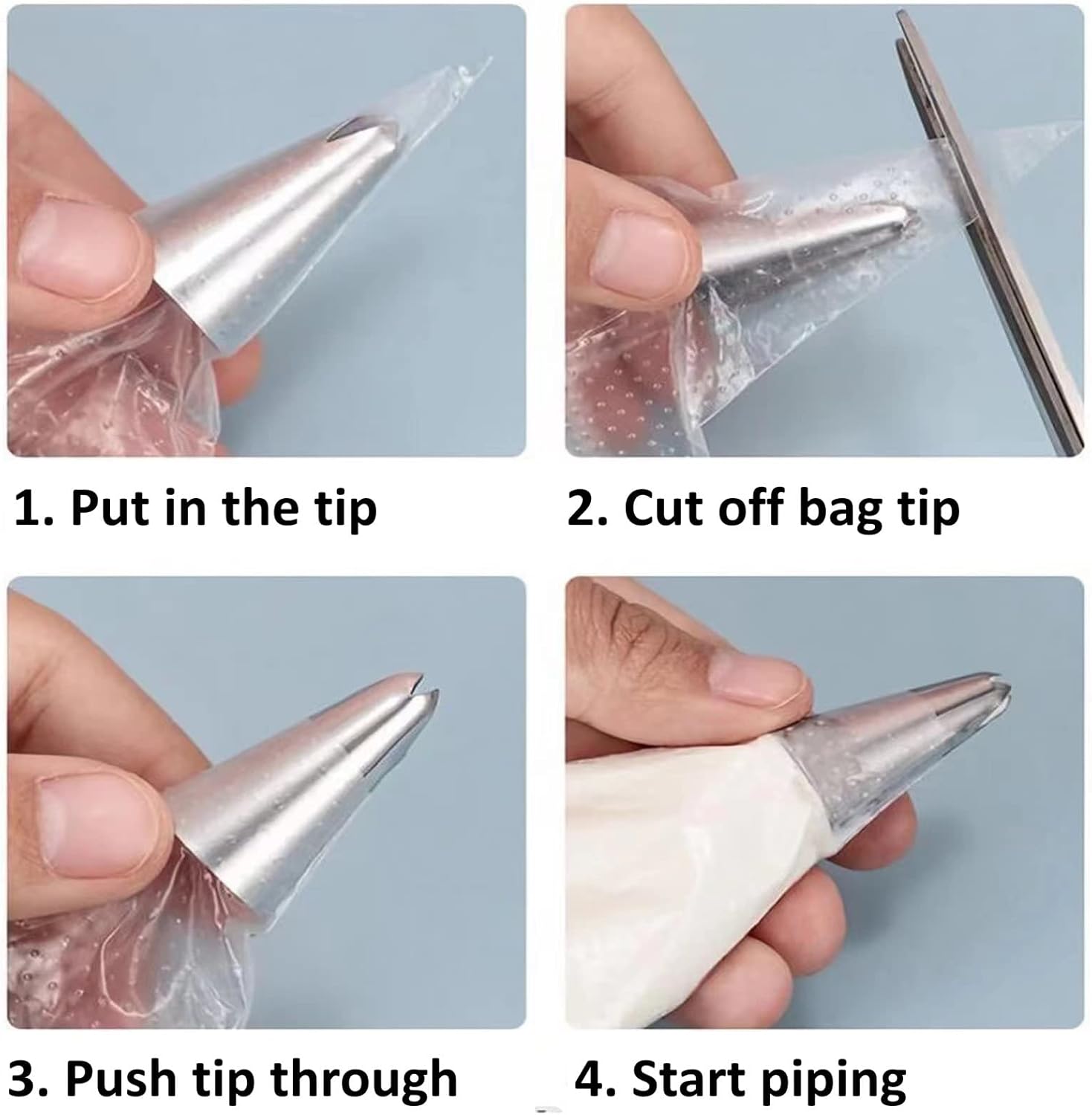 - WORKS WITH ANY TIPS: These thick and durable piping bags 18 inch work well with any sizes of couplers and tips, you can also use without tip or coupler. Wide opening makes bag simple to fill.