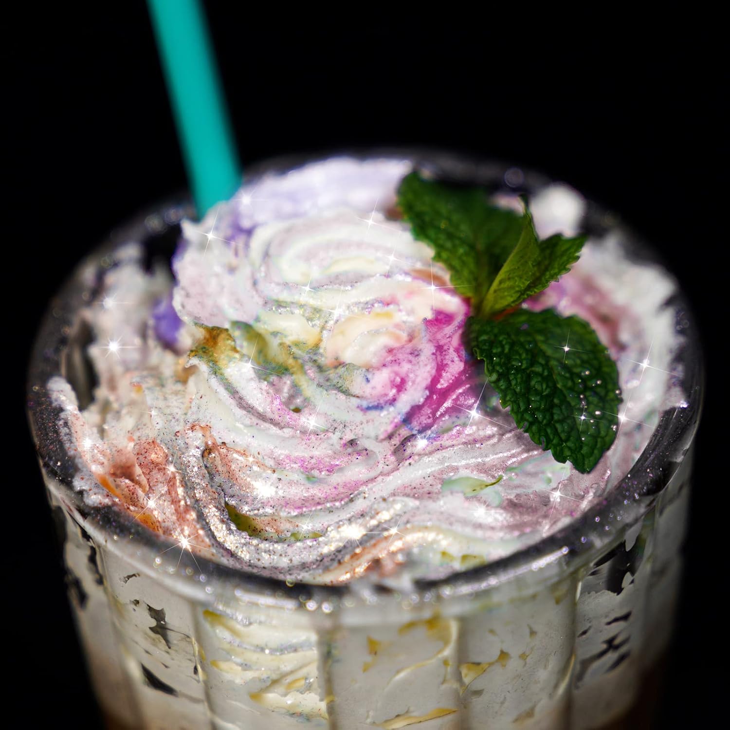 - ✔️【Use with Brews】Food-grade glitters are so fun and simple to use with brews. Add one pinch or two directly to your favorite beverage, mix it with cocktail syrups, juices, liqueurs, liquors, or spirits. Use a clear glass instead of opaque containers so that the liquid looks so cool, especially when you move it around in the glass with a stir. A tiny amount of dust can create a great visual spectacle, and clear liquids offer a great blank canvas for glitter to show off the best ability.