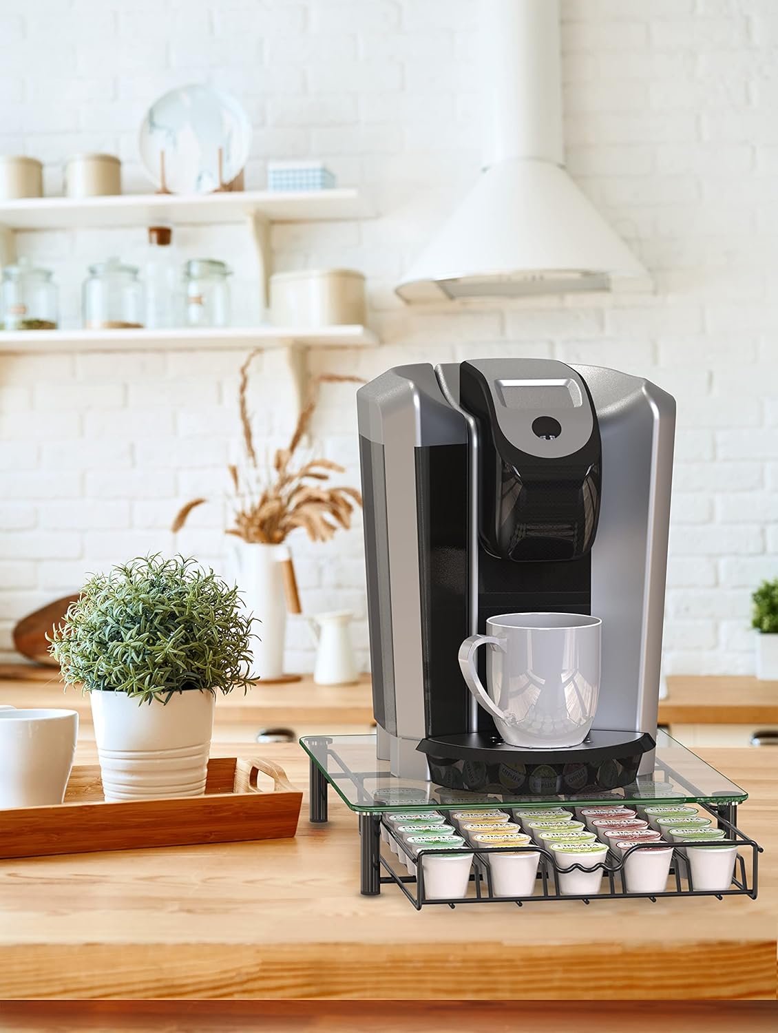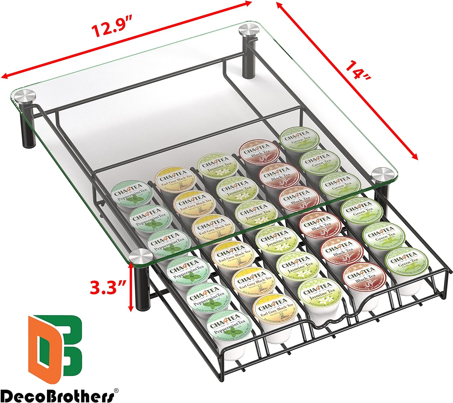 Deco Brothers Crystal Tempered Glass K-Cup Holder Drawer for 30 Coffee Pods Storage, Black