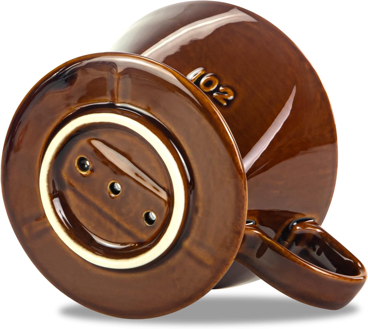 Pour Over Ceramic - Coffee Dripper Ceramic Coffee Maker with 3 Holes Flat Bottom, Porcelain Slow Filter Cone for Travel, Camping, Office, Home, Coffee Maker Brew