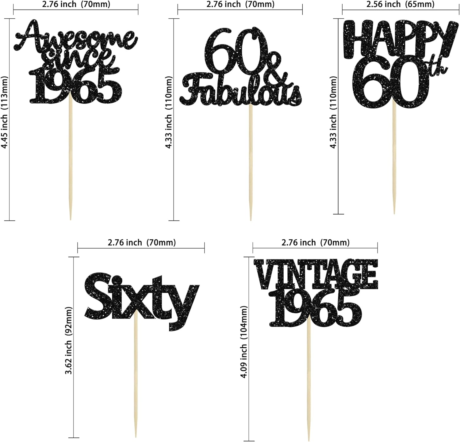 Gyufise 30Pcs 60th Birthday Cupcake Toppers Vintage 1965 Cake Decorations Cheers to 60 Fabulous Sixty Cupcake Picks 60th Birthday Wedding Anniversary Party Cake Decorations Supplies Black