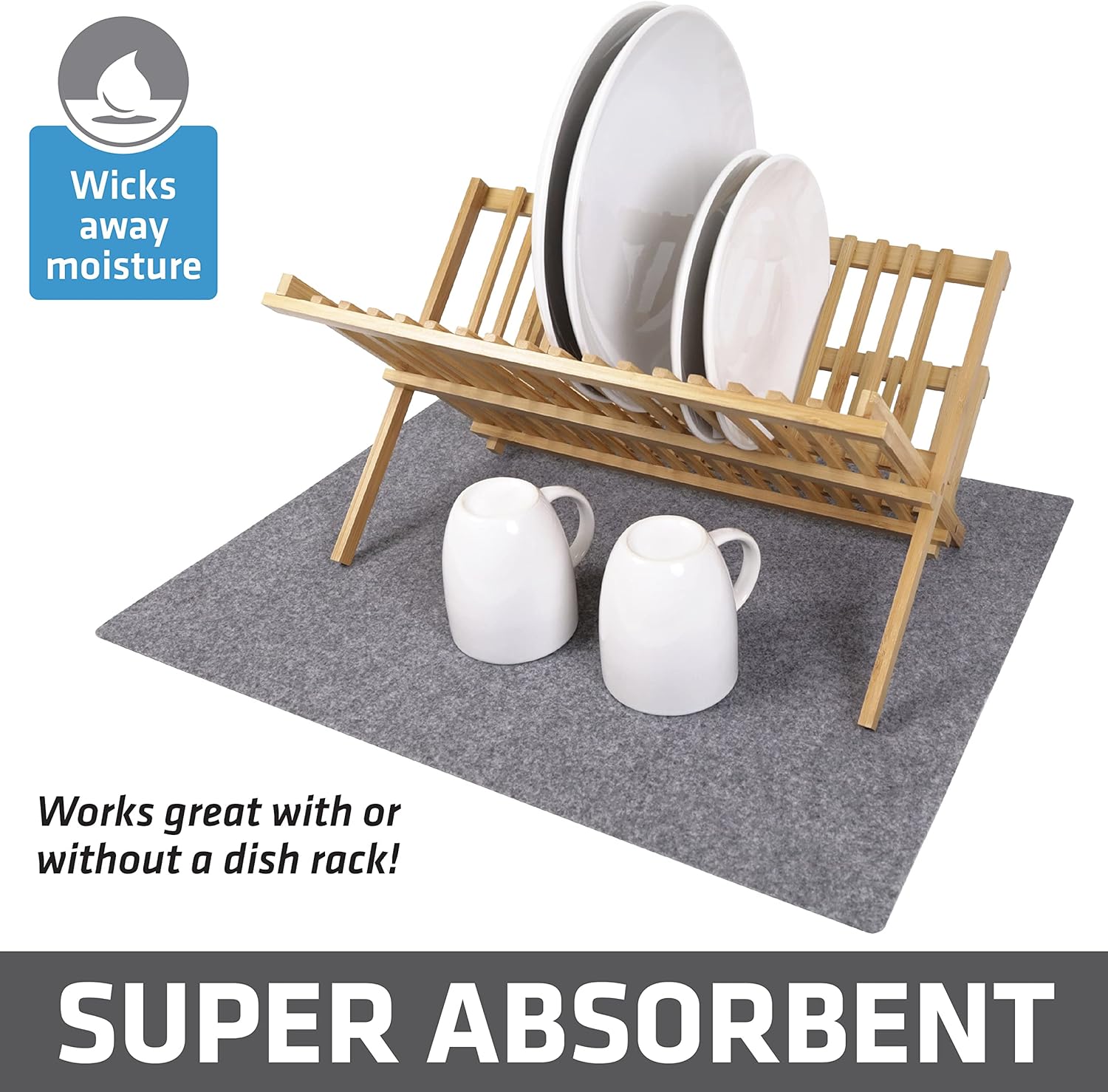 - PROTECTS COUNTERTOPS FROM SCRATCHES, SCUFFS, AND SPILLS: Our mat protects your counters by providing a protection layer when placed under a dish rack, pots, pans, dishware, and glassware. It also protects under small appliances such as a mixer, blender, or coffee maker.