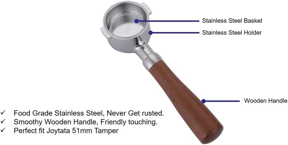 - ☕【Food Safe Stainless Steel Portafilter】: Made of food grade SUS304 stainless steel, non-toxic, corrosion resistance, rust resistance and durability. Confident to buy it and enjoy the coffee time.