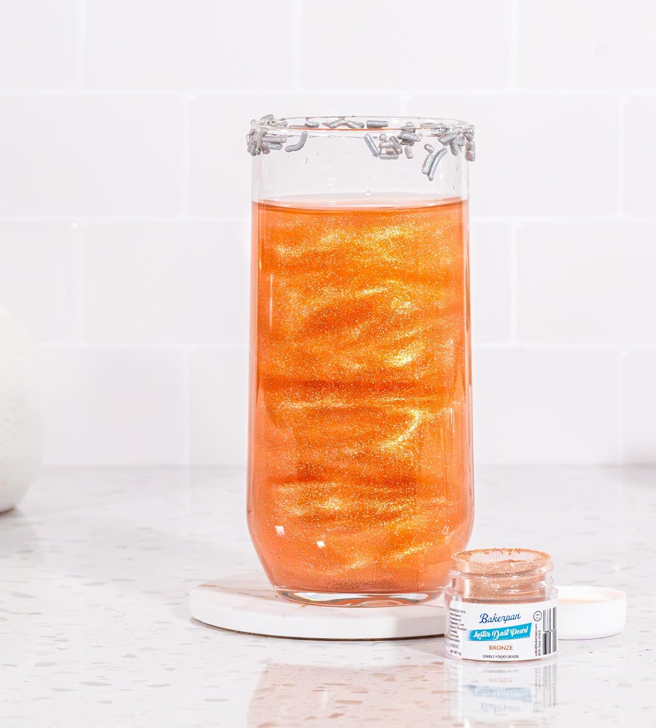 Bakerpan Pearl Luster Dust Edible, Bronze Edible Glitter for Cocktails, 4 Grams Edible Glitter for Cake Decorating, Cookies, Chocolates and Candies, Drinks (Made in USA)