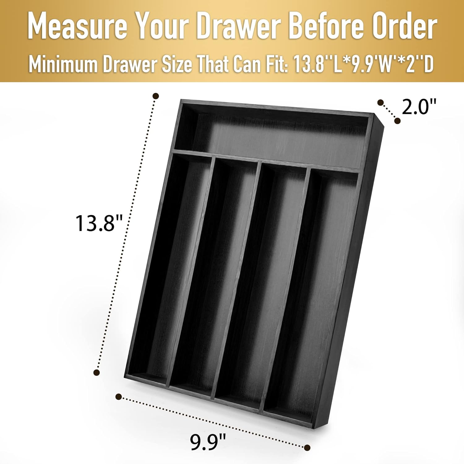 Bamboo Silverware Holder - Drawer Organizer with 5 Slots (Black)