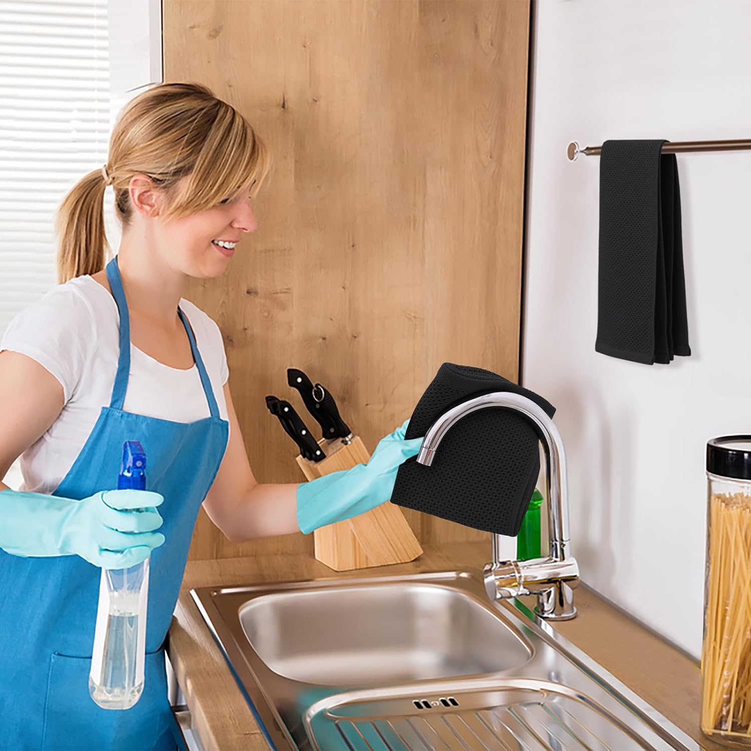 Kitinjoy 100% Cotton Waffle Weave Kitchen Towels, 6-Pack Super Soft and Absorbent Dish Towels for Drying Dishes, Kitchen Hand Towels, 13 in x 28 in, Black