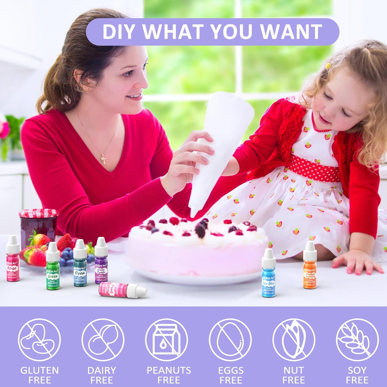 - AMERICAN FOOD STANDARDS & SAFETY - Food Coloring for baking with food grade material. Non-toxic, non-dairy, non-nut and non-gluten. High concentrations Food Color won't alter the taste, texture or scent of any recipe, just makes your food more lively and interesting.