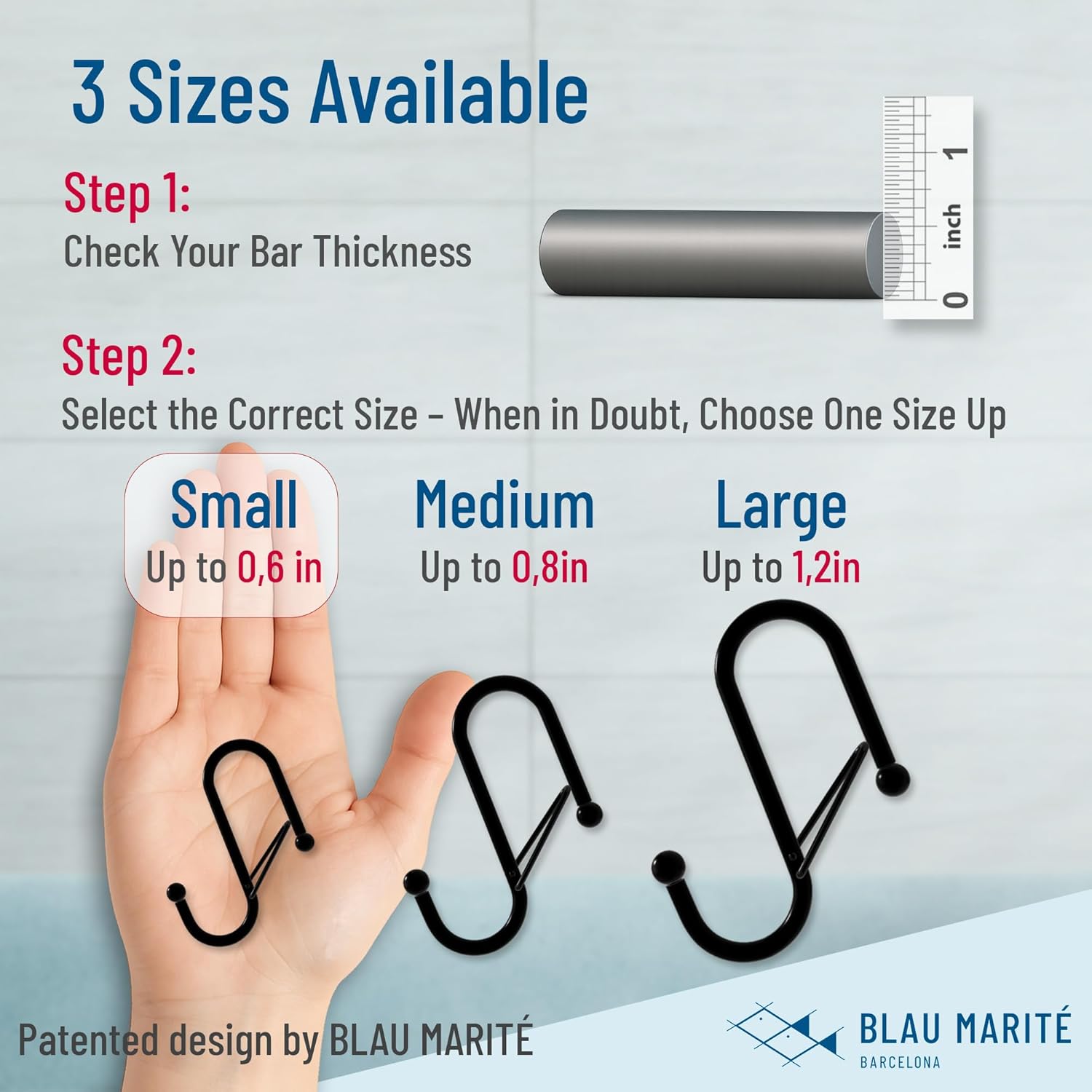 - FITS BARS UP TO 0.6 In – IDEAL FOR POTS & TOWEL RACKS: These S-hooks for hanging fit bars, rods, and pot racks up to 0.6 In in diameter, making them perfect for hanging cookware, towels, and sponges.
