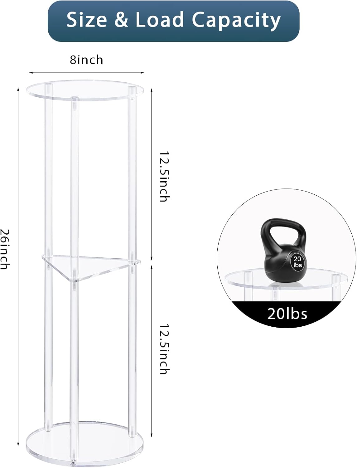 HMYHUM Acrylic Drink Table for Small Spaces, Martini Table for Living Room, Small Drink Side Table, 3 Tiers, Round, Modern, 8" L x 8" W x 26" H, Clear