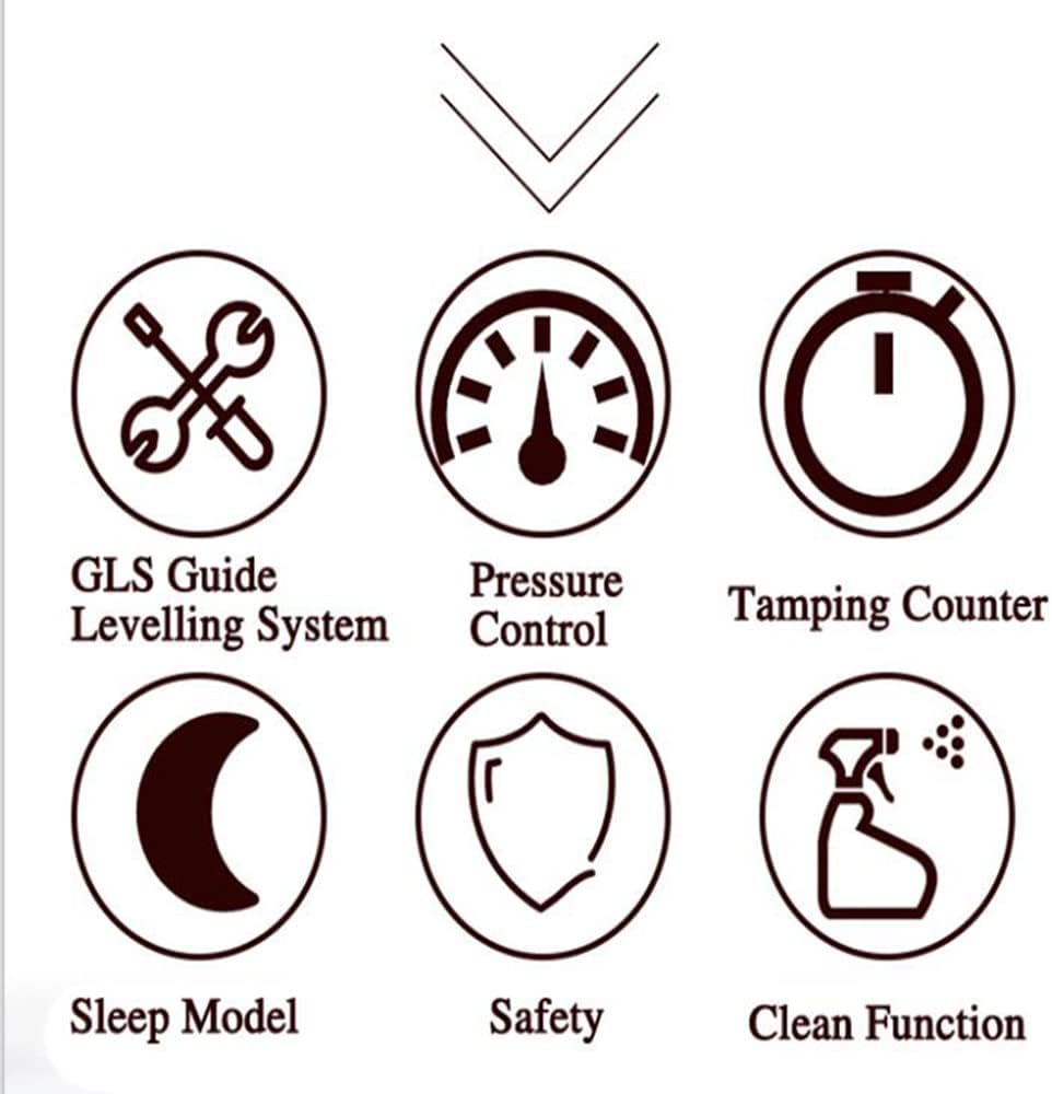 - Arbitrarily choose the ideal pressure setting range from 2kg to 38kg, and 10kg, 20kg, 30kg to quickly set the pressure you want.Adjustable horizontal lower holder, suitable for coffee handles of different heights.