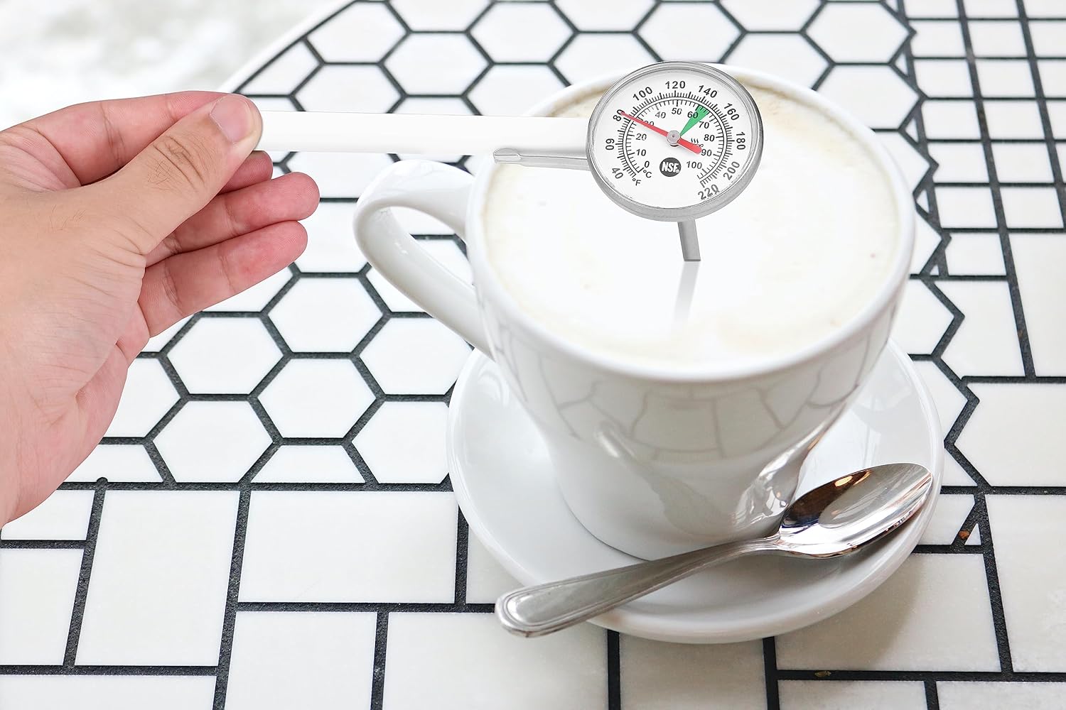 - Instant Read Food Thermometer: This 1 3/8” dial food thermometer with 5” probe provides an instant read on internal meat, coffee drinks, tea and chocolates milk foam temperatures from 0° to 220°F / -20° to 100°C, Also as an espresso accessories for food preparation temperatures