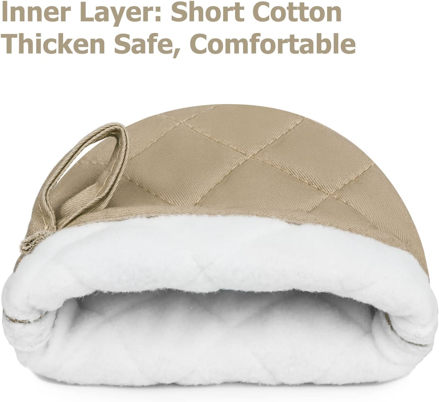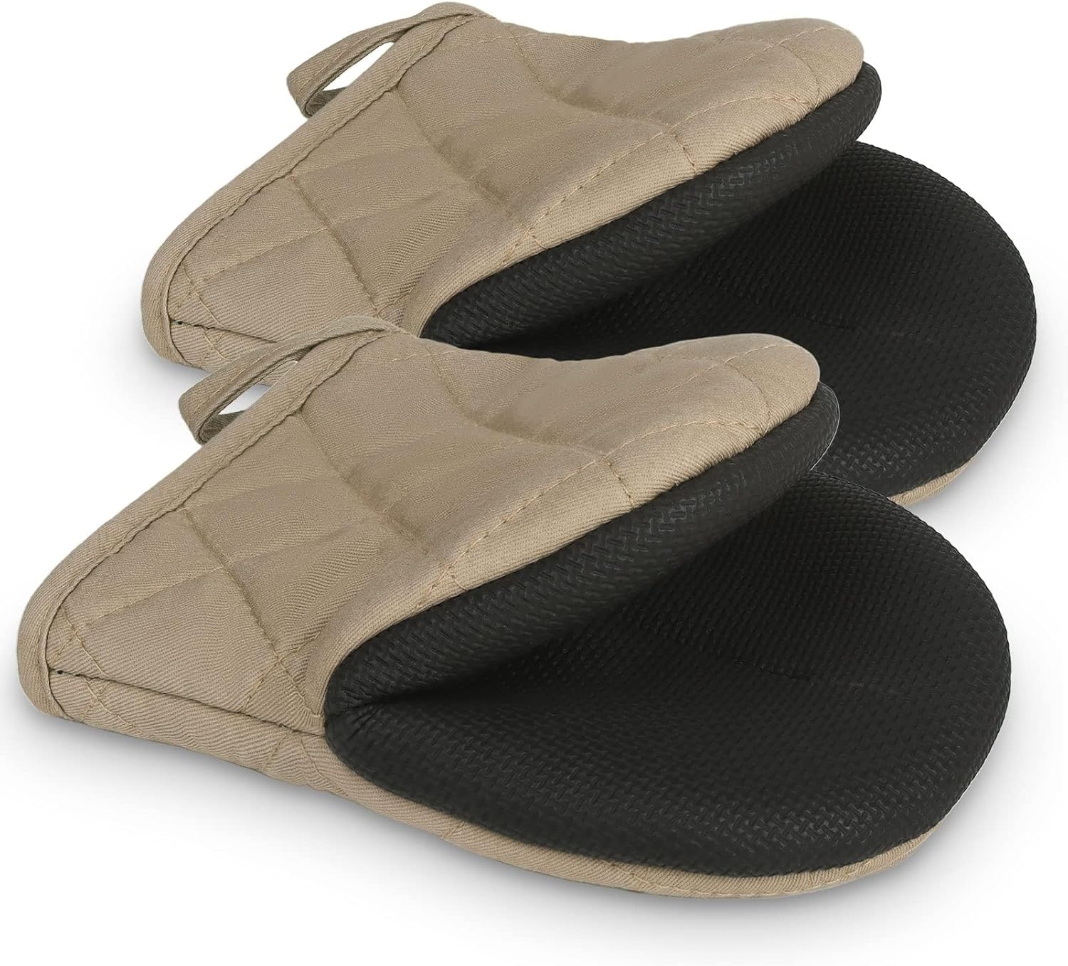 1 Pair Short Oven Mitts, Heat Resistant Silicone Kitchen Mini Oven Mitts for 500 Degrees, Non-Slip Grip Surfaces and Hanging Loop Gloves, Baking Grilling Barbecue Microwave Machine Washable