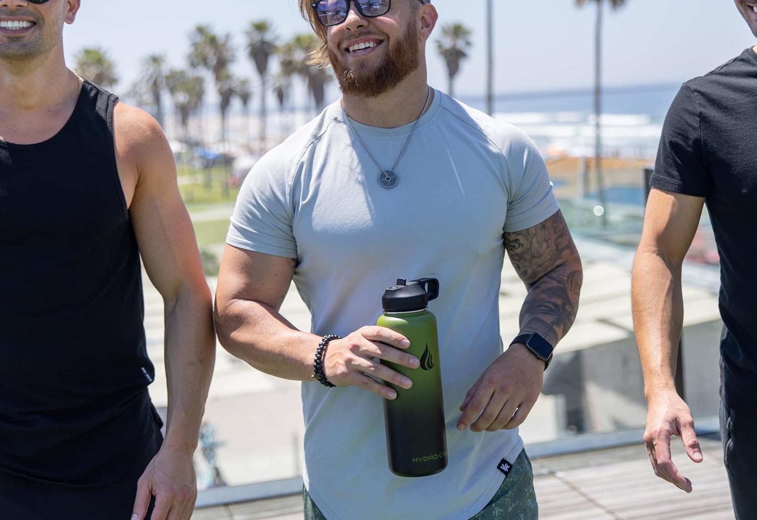 HYDRO CELL Stainless Steel Insulated Water Bottle with Straw - For Cold & Hot Drinks - Metal Vacuum Flask with Screw Cap and Modern Leakproof Sport Thermos for Adults (Army/Black 40oz)