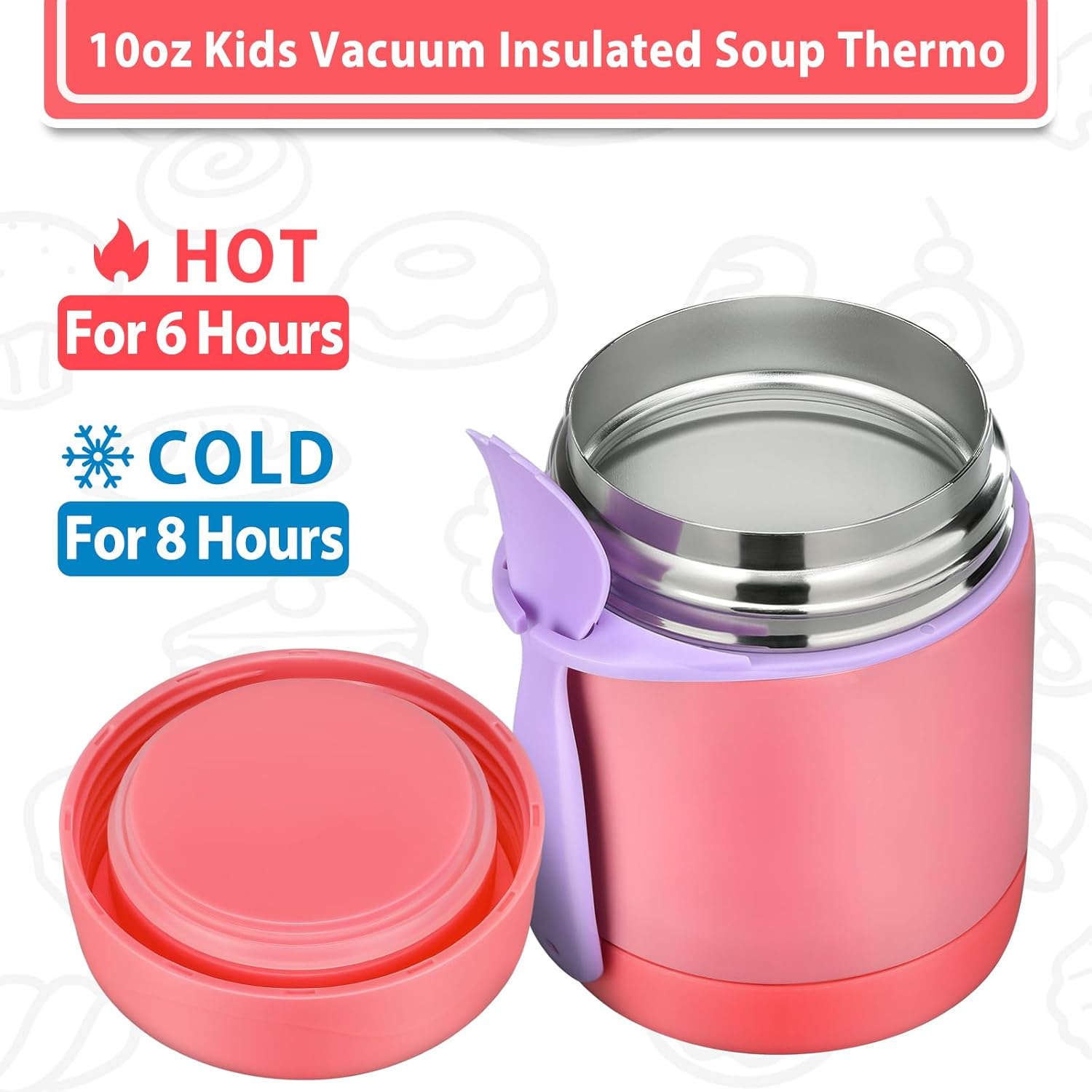 10oz Soup Thermo for Hot Food Kids,Lunch Thermo Kids Food Jar with Spoon Hot Insulated Food Containers,Leak Proof Stainless Steel Wide Mouth Lunch Food Thermo Jar for School(Pink)