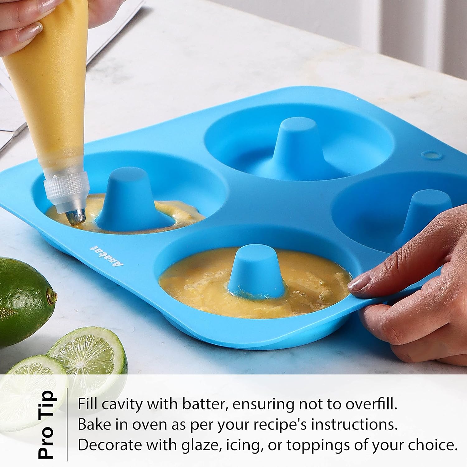 - NON-STICK & FLEXIBLE SILICONE - Anaeat 4 Inch non-stick silicone donut pan is big size to make full size donut. The pan is made of non-stick and flexible silicone, which allows for easy removal of the cake once it has reached the desired temperature. The pan is also easy to stack and store, saving you space in your kitchen.
