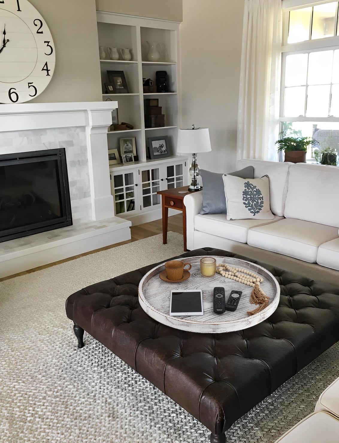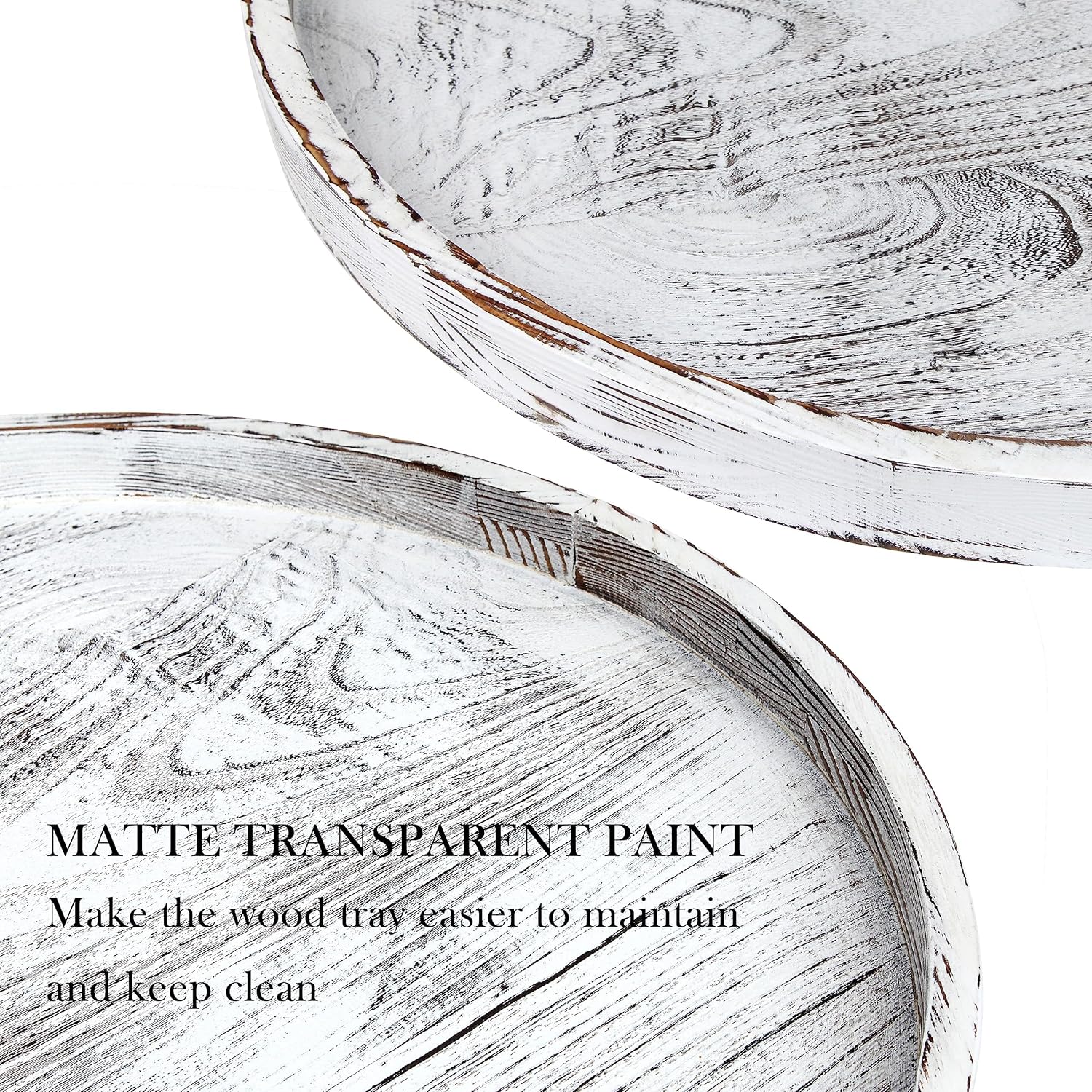 Extra Large Round Ottoman Table Tray Round-24 - Rustic Wooden Serving Tray for Farmhouse Decorative Oversized Coffee Table Trays Living Room Kitchen Counter Breakfast Whitewash