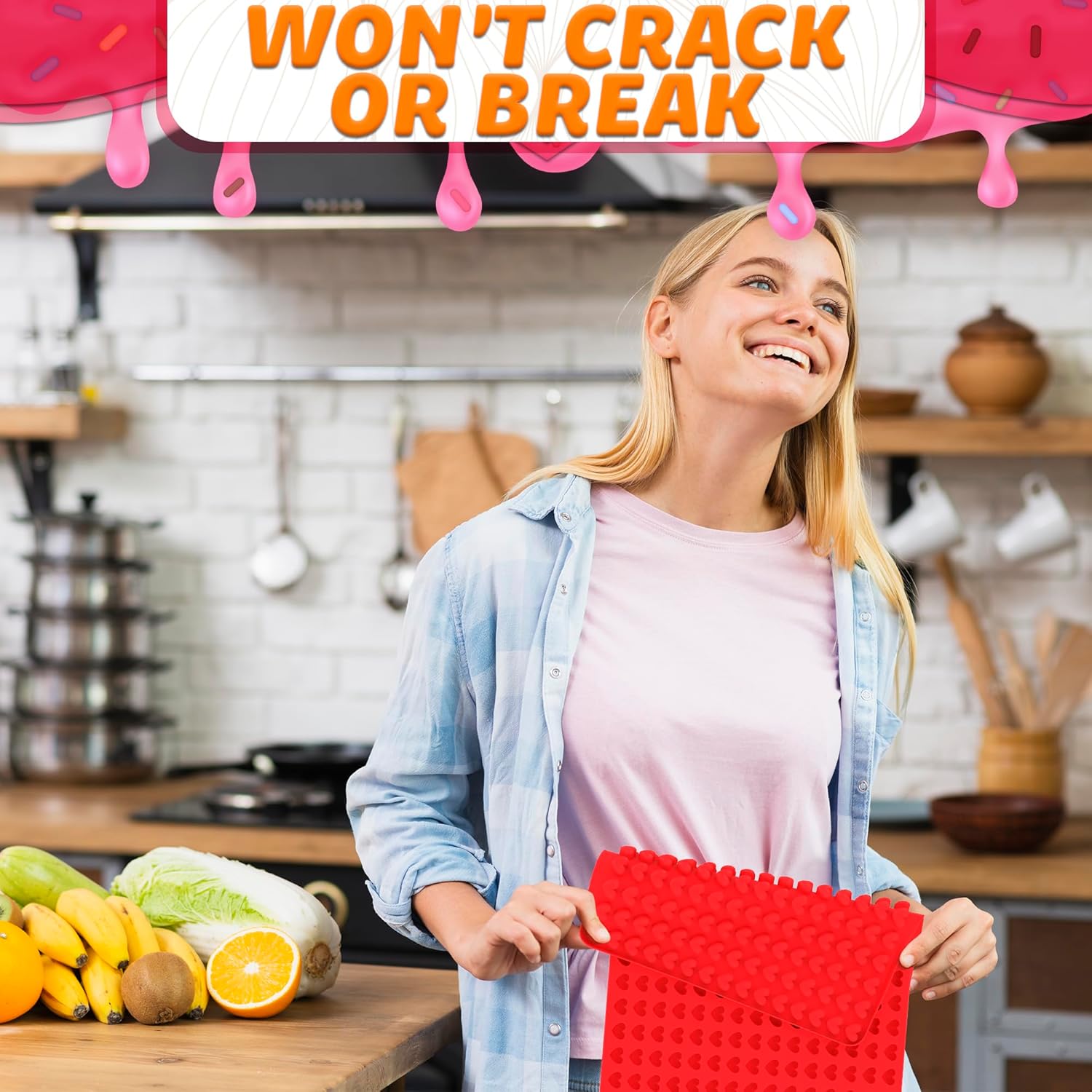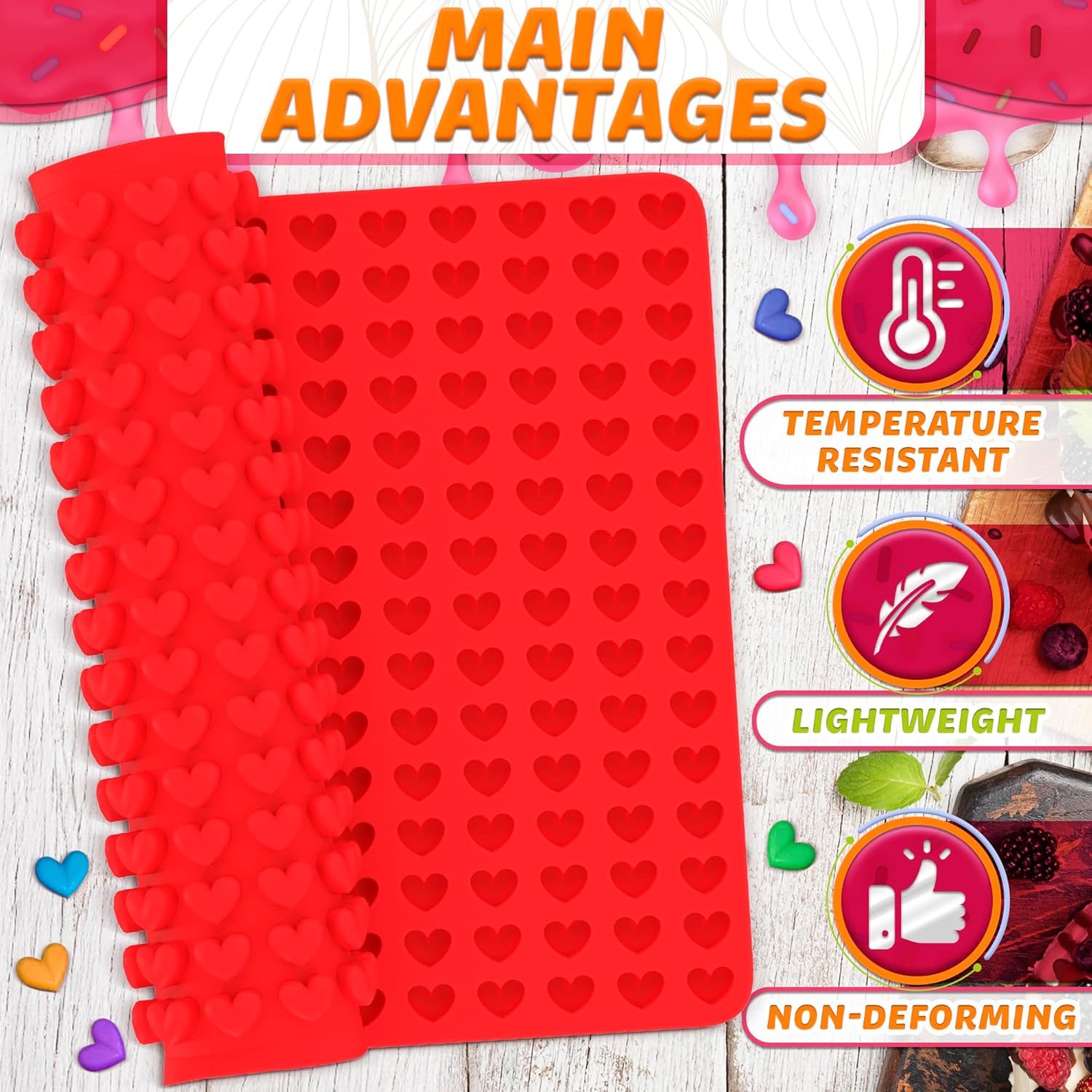- Handy Design: Sized 10.9x15.4" this heart shaped silicone molds for baking can make 255 bite-sized sweets at once. If needed you can easily cut our heart silicone molds for baking to your desired size.