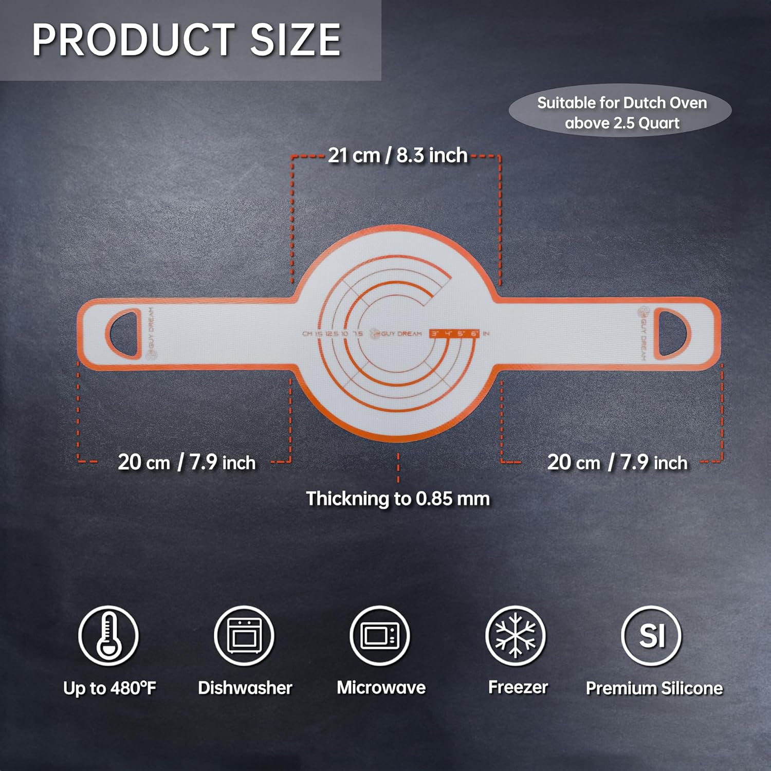 GUYDREMAT Dutch Oven Bread Baking Sling - Heat Resistant, Non-Stick Silicone Mat for Lifting Artisan Loaves, Food-Grade, Reusable Bread Tool, Fits 3-7 Quart Cookware, Easy to Clean