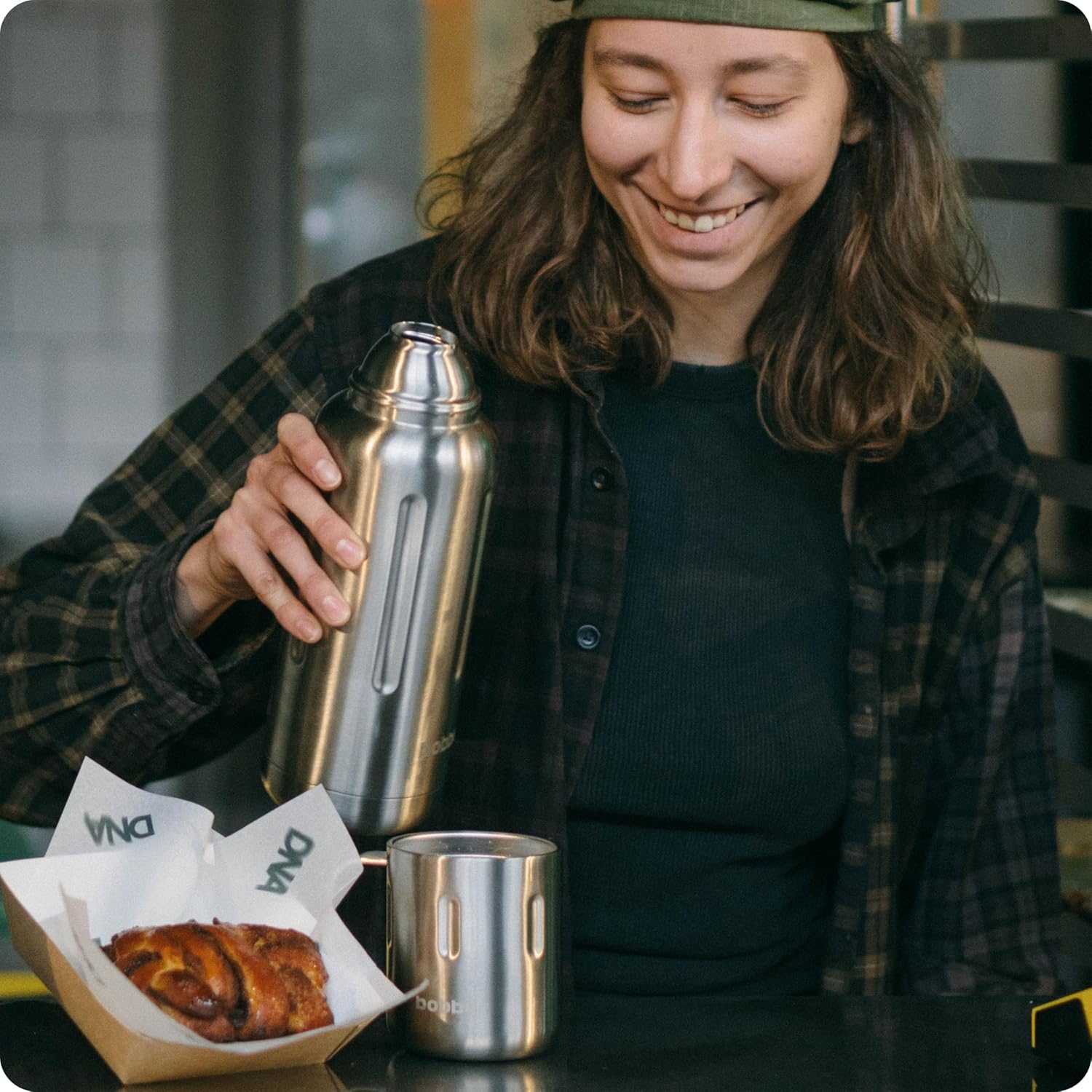 BOBBER 26 oz Stainless Steel Travel Thermos for Hot Drinks – Dishwasher Safe Metal Water Bottle with Cup Lid for Men, Hiking, Travel – Keeps Hot for 36 Hours – BPA-Free, Vacuum Insulated (Matte)
