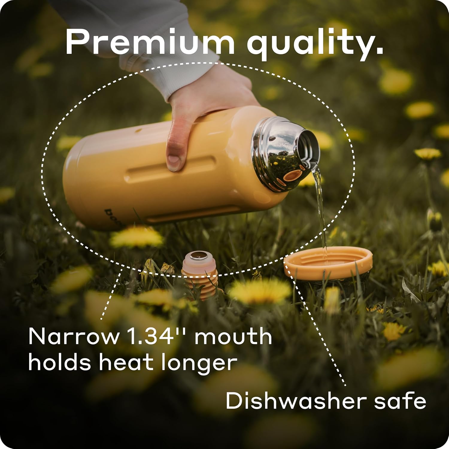 - PREMIUM QUALITY CONSTRUCTION: Crafted from 18/8 high-grade stainless steel, our travel thermos ensures your drinks remain free from harmful chemicals. BPA-free, food-grade steel, plastic, and silicone components guarantee a safe drinking experience. Plus, the stopper features an extra metal layer to prevent odor absorption