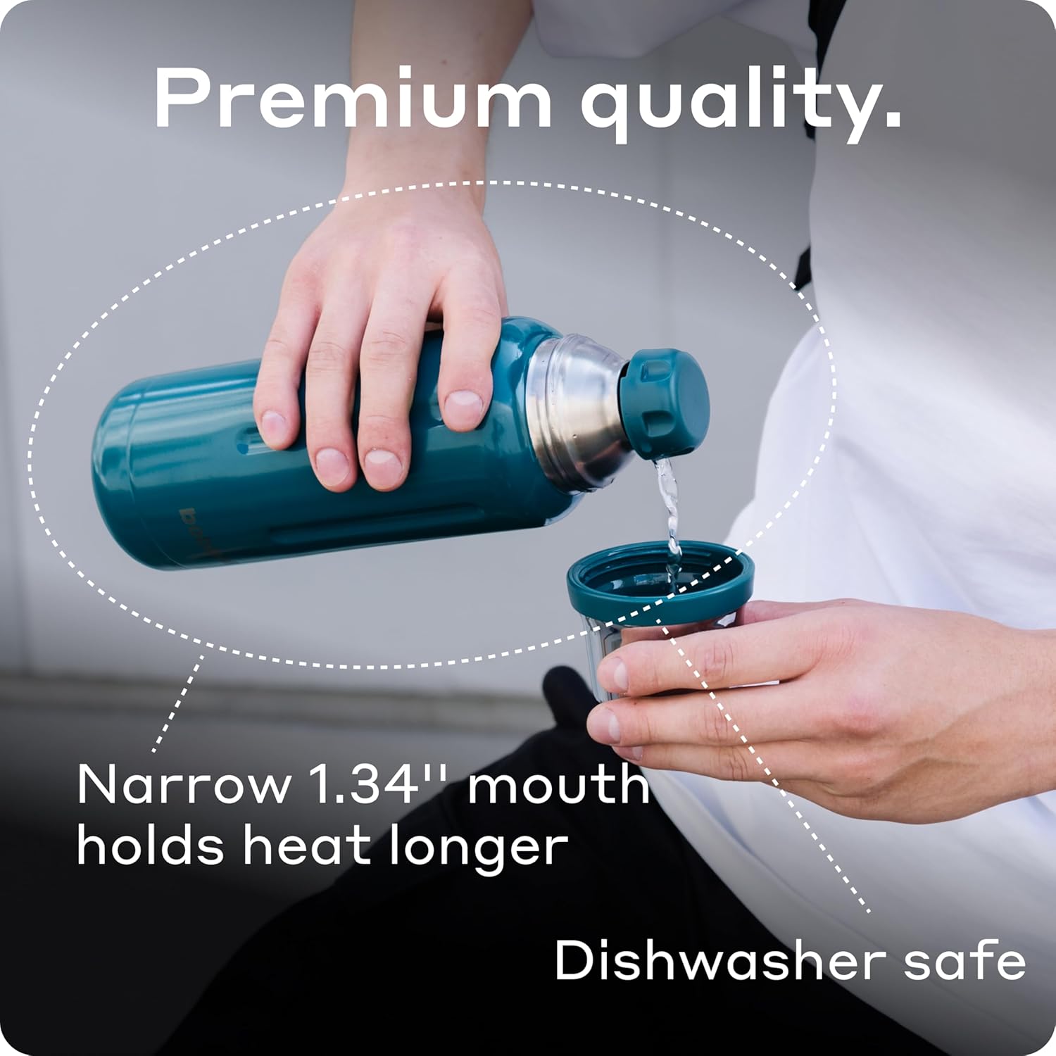 - PREMIUM QUALITY CONSTRUCTION: Crafted from 18/8 high-grade stainless steel, our travel thermos ensures your drinks remain free from harmful chemicals. BPA-free, food-grade steel, plastic, and silicone components guarantee a safe drinking experience. Plus, the stopper features an extra metal layer to prevent odor absorption